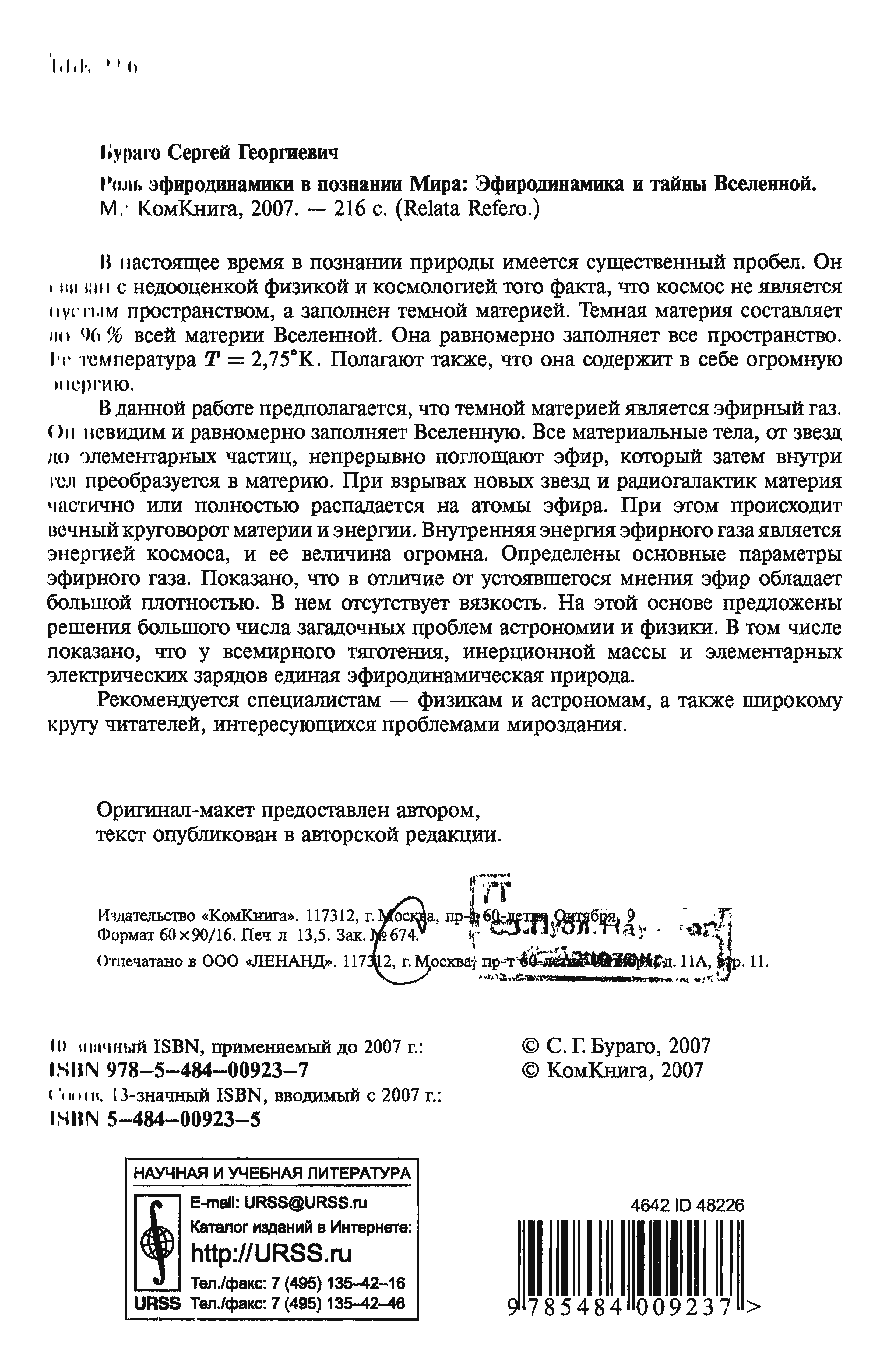 "Роль эфиродинамики в познании Мира: Эфиродинамика и тайны Вселенной" - читать интересную книгу автора ( Бураго Сергей Георгиевич) |