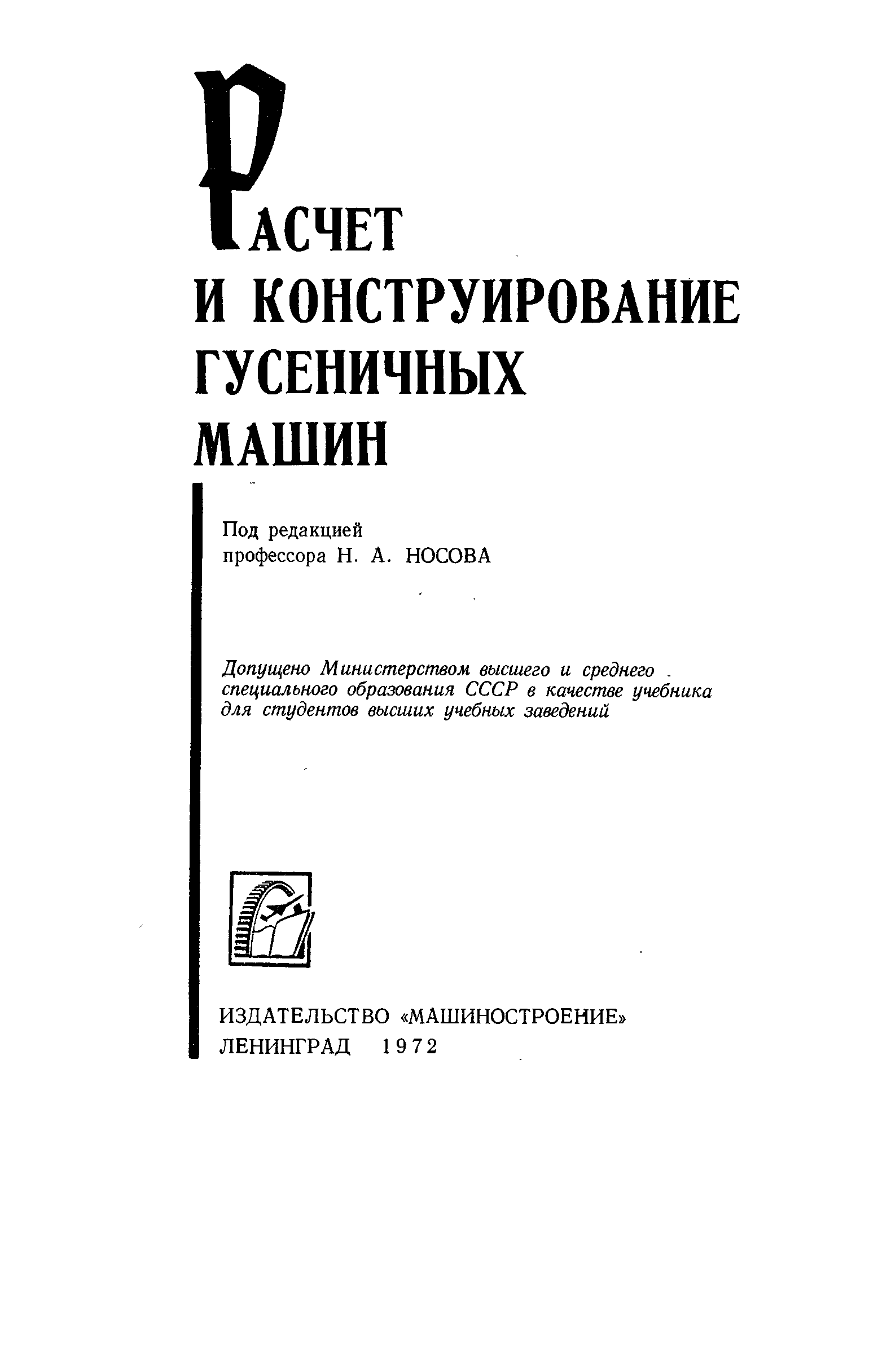 "Расчет и конструирование гусеничных машин" - читать интересную книгу автора ( Носов Н. А., Галышев В. Д., Волков Ю. П.,...) |