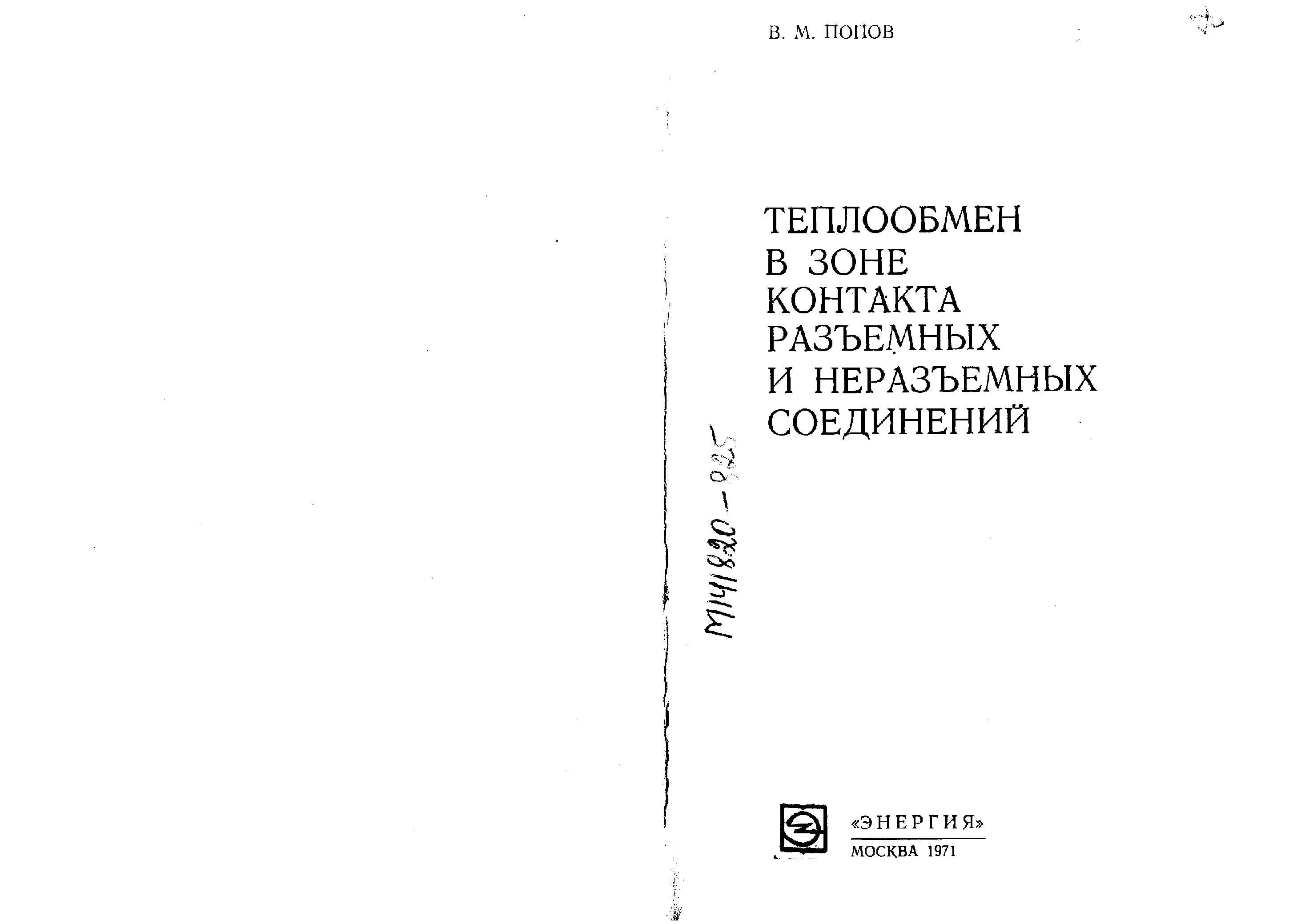 "Теплообмен в зоне контакта разъемных и неразъемных соединений" - читать интересную книгу автора (Попов) |