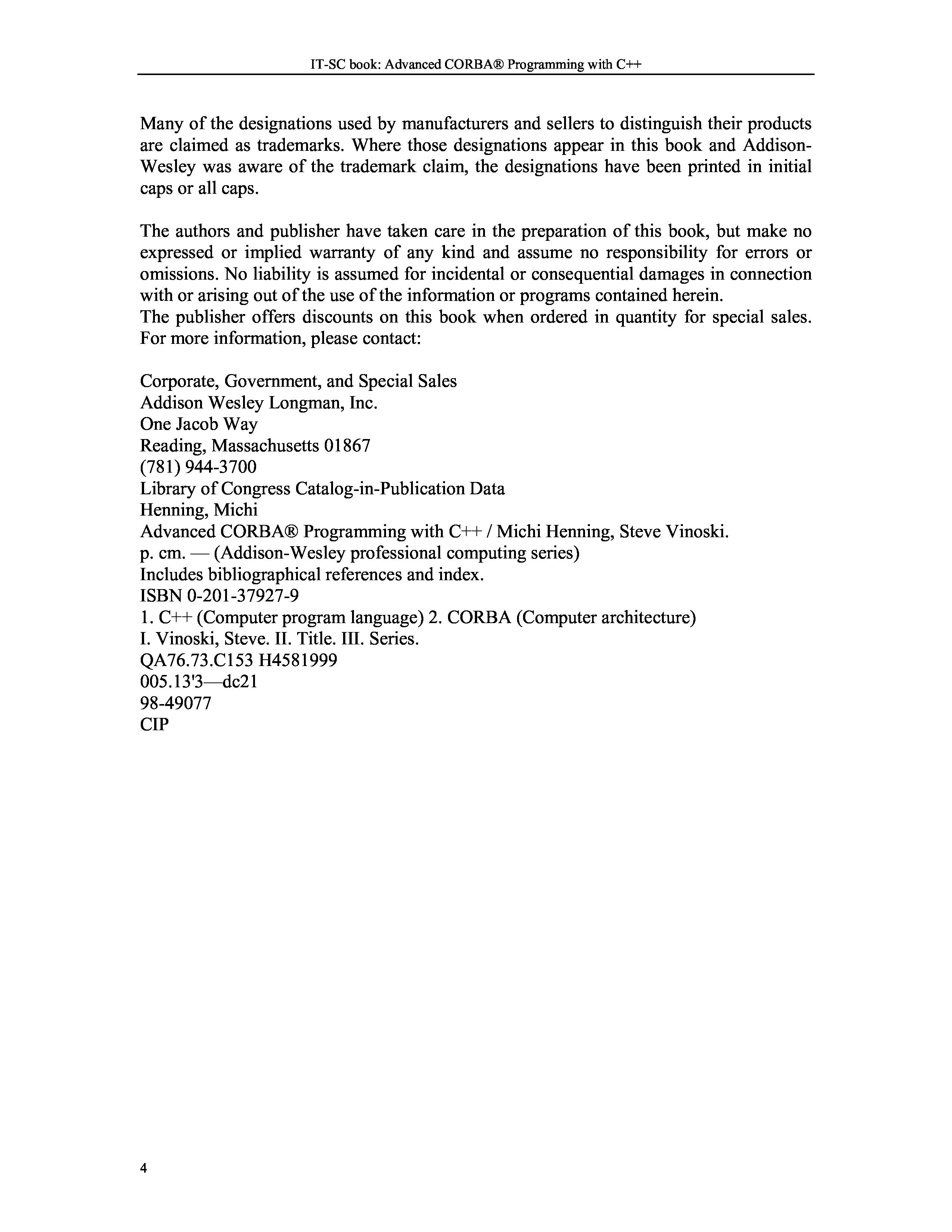 "Advanced CORBA (R) Programming with C++" - читать интересную книгу автора (Michi Henning, Steve Vinoski)