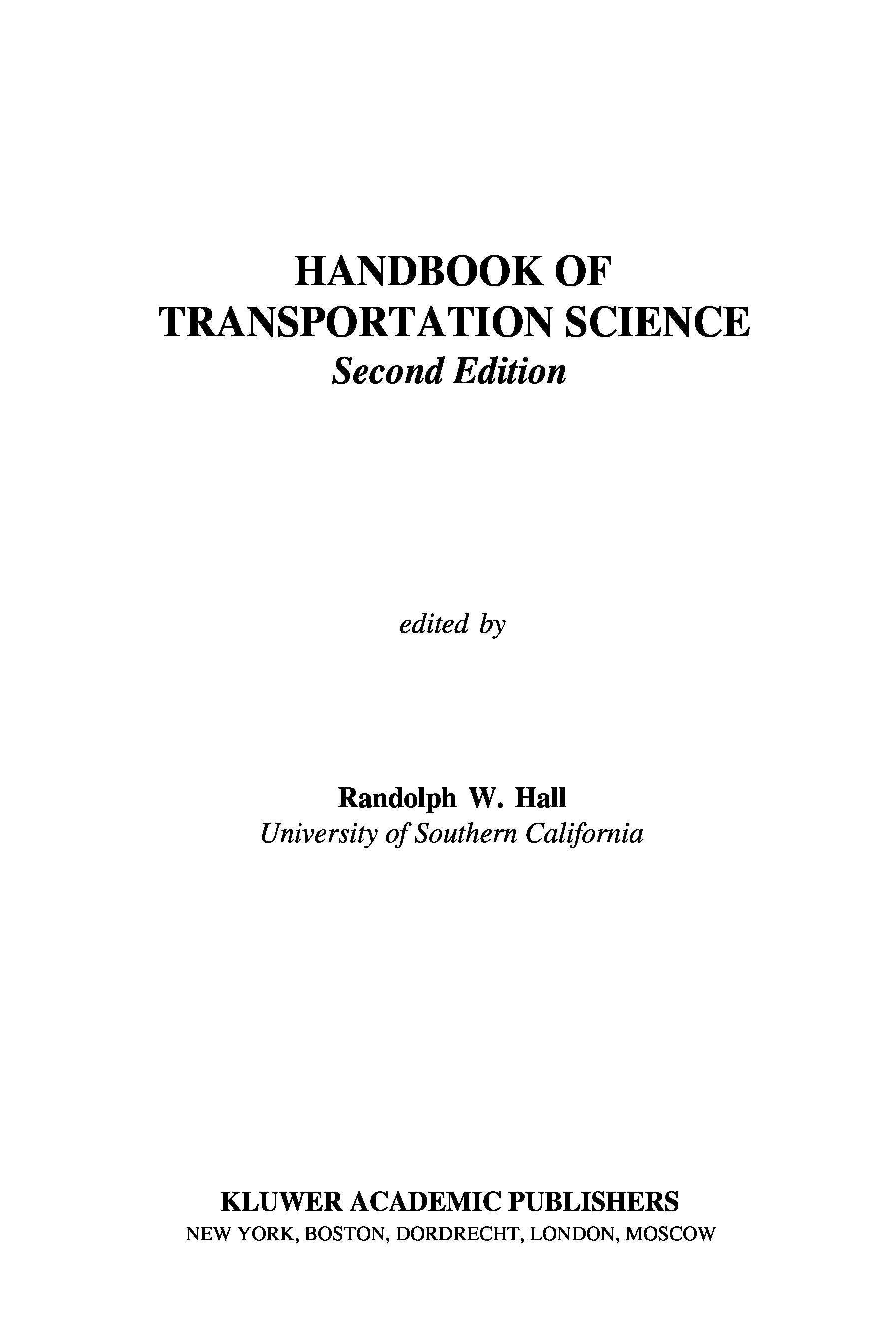 "Handbook of Transportation Science" - читать интересную книгу автора