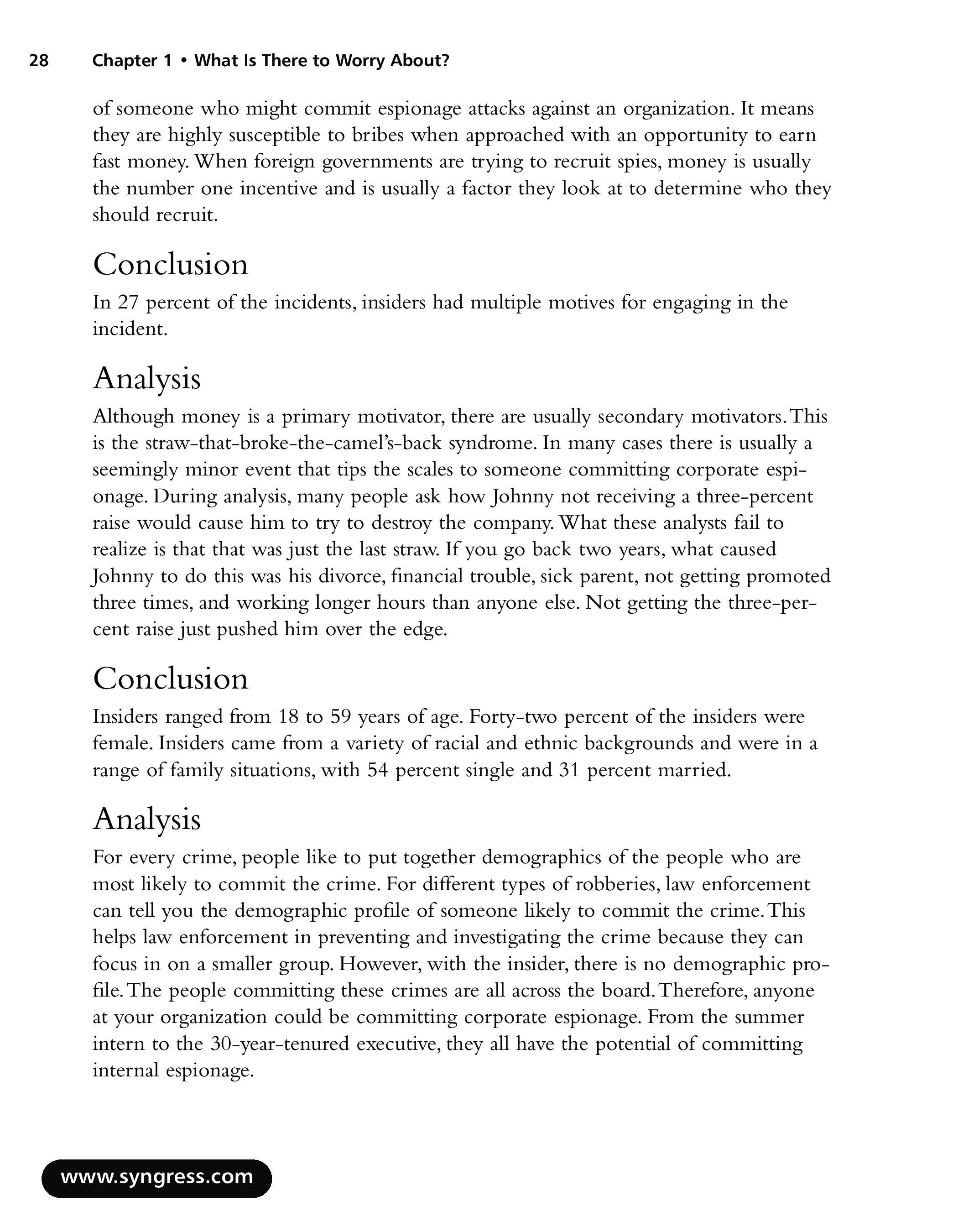 "Insider Threat: Protecting the Enterprise from Sabotage, Spying, and Theft" - читать интересную книгу автора (Eric Cole, Sandra Ring)