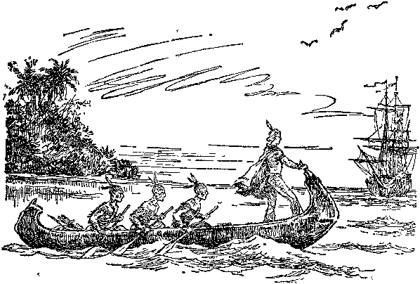 И, к великому своему изумлению, Ренэ был избран вождем алачуа. Был он еще очень молод и боялся, что не справится с новыми обязанностями, но Я-чи-ла-не оказался незаменимым помощником и во всех делах давал ему советы. Ренэ сжился с индейцами, разделяя все их интересы, к их заботам относился как к своим собственным, но к концу третьего года его охватила жестокая тоска по родине. Как-то пришел с востока гонец, присланный дружественным племенем. Его привели в хижину вождя. – Кто прислал тебя? – спросил Ренэ. Гонец ответил не сразу: – Я принес весть, что вернулись французы. В день новолуния три больших каноэ, украшенные флагом с лилиями, показались у побережья. Наше племя думает, что скоро будет бой между вновь прибывшими и живущими здесь белыми людьми, которые завладели нашей страной. Весть о войне между белыми взбудоражила всю деревню. Воины стали натягивать новые тетивы на свои луки и приделывать к копьям острые наконечники из кремня. Между тем старшины племени, а с ними и Я-чи-ла-не собрались в хижине Та-ла-ло-ко. Когда все закурили свои каменные трубки, Ренэ выступил вперед и произнес такую речь: – Старшины племени алачуа! Много месяцев прошло с тех пор, как вы усыновили Та-ла-ло-ко. И все это время он разделял ваши заботы, жил вашими радостями и горестями. Теперь он должен расстаться с вами. Из-за далеких вод снова приехали сюда его соплеменники. Та-ла-ло-ко рад их увидеть. Но грустно ему покидать страну Алачуа. Неужели он никогда больше ее не увидит? Быстро скользили по воде каноэ. Гребцы часто сменялись. Ренэ всматривался в знакомые берега и узнавал те места, с которыми у него связано было столько воспоминаний. Промелькнул зеленый мыс, где умер Хас-се, а дальше начинались великие болота, и показалась маленькая роща, где Читта по собственной вине лишился зрения. Вскоре каноэ проплыли мимо лагуны, откуда тянулась тропа, извивавшаяся среди болот и ведущая к разрушенному гнезду семинолов. Еще несколько поворотов – и каноэ уже неслись вниз по течению другой реки, катившей свои воды на восток, к побережью океана. Наконец, открылись широкие воды пролива, и Ренэ невольно вскрикнул от изумления. Думал он, что ему придется плыть к реке Май, и лишь там найдет он своих соотечественников, но случилось иначе: на расстоянии мили от берега стояли на якоре три больших корабля, а на верхушках их мачт развевались французские флаги. Ренэ был так взволнован, что долго не мог говорить. Наконец, овладев собой, приказал он воинам вести каноэ к подножию холма среди болот, где отдыхал он вместе с Хас-се после побега из форта Каролина. Там, на этом холме, они должны были сделать привал и ждать его возвращения. Приблизившись к кораблям, Ренэ заметил, что на палубах столпились люди и с любопытством его рассматривают. Затем кто-то грубым голосом приказал ему остановиться и объяснить, кто он такой и зачем сюда явился. Гребцы дали задний ход, а Ренэ встал и, выпрямившись во весь рост, заговорил по-французски, к великому удивлению тех, к кому он обращался. – Кто здесь командир? – спросил он. – И на каком корабле он находится? Толпа на шканцах ближайшего судна расступилась, и вперед выступил человек в коротком бархатном плаще, из-под которого виднелась рукоятка меча. Голову его покрывала шляпа, украшенная пером. – Я адмирал Доминик де Гурж, – сказал он. – Аты кто такой? Одет ты, как д