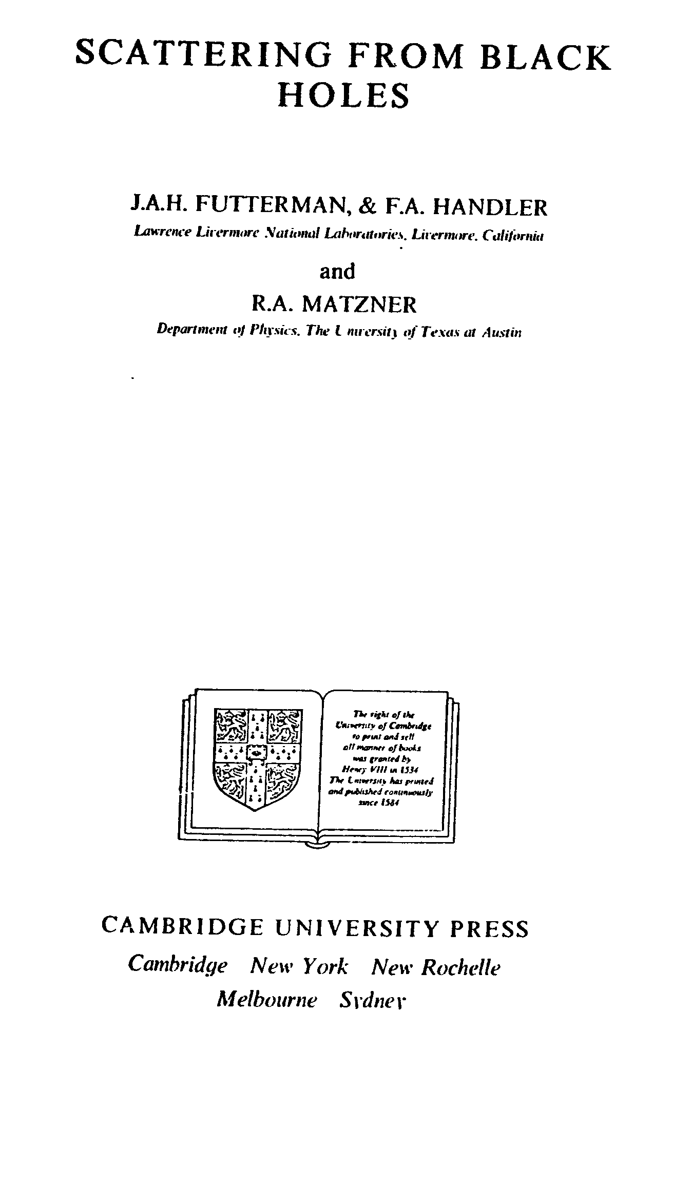 "Matzner Scattering from Black Holes" - читать интересную книгу автора (J.A.H.Futterman, F.A. Handler, R.A. ) |