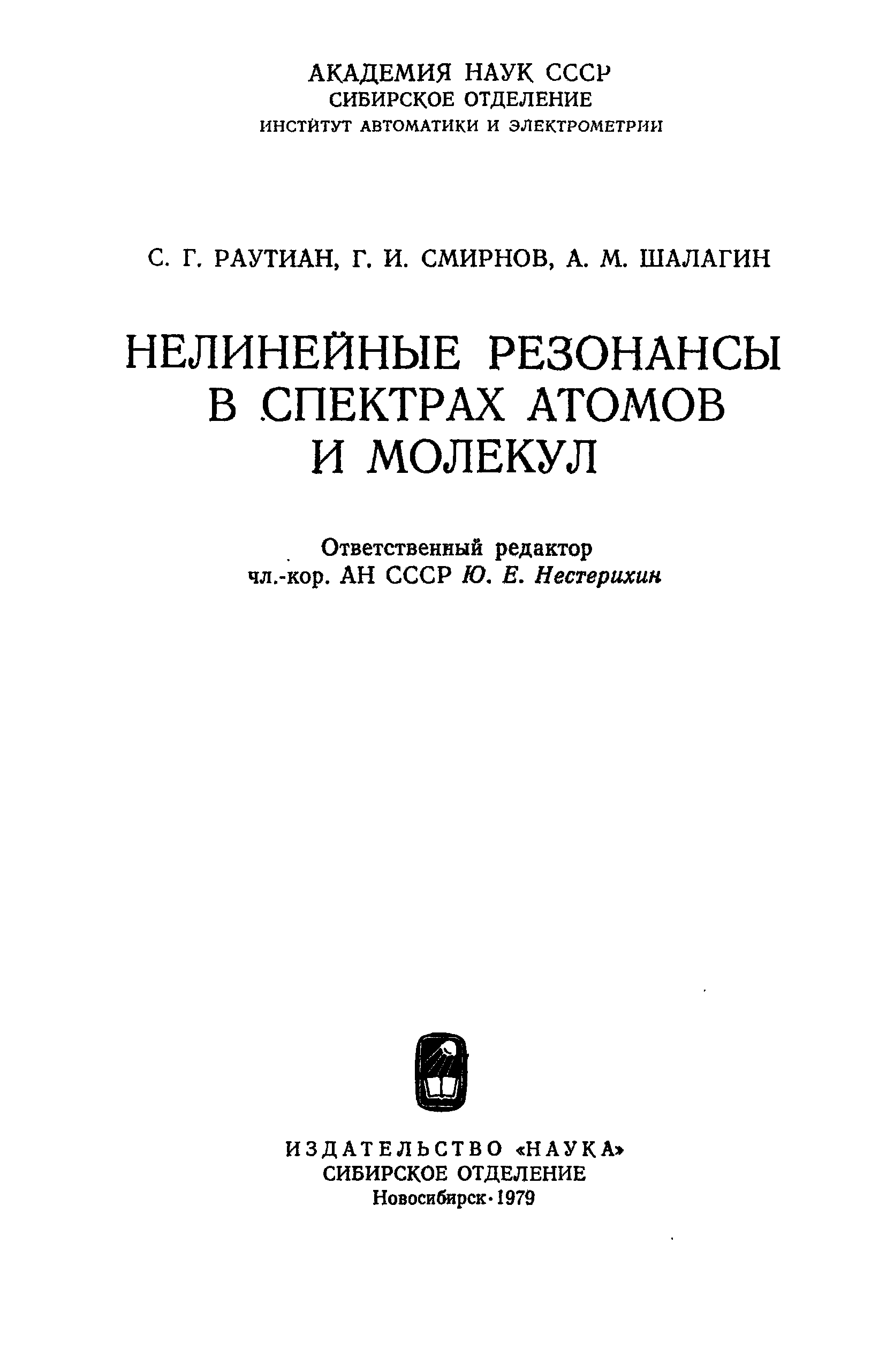 "Нелинейные резонансы в спектрах атомов и молекул" - читать интересную книгу автора (Раутиан С.Г., Смирнов Г.И., Шалагин А.М.)
