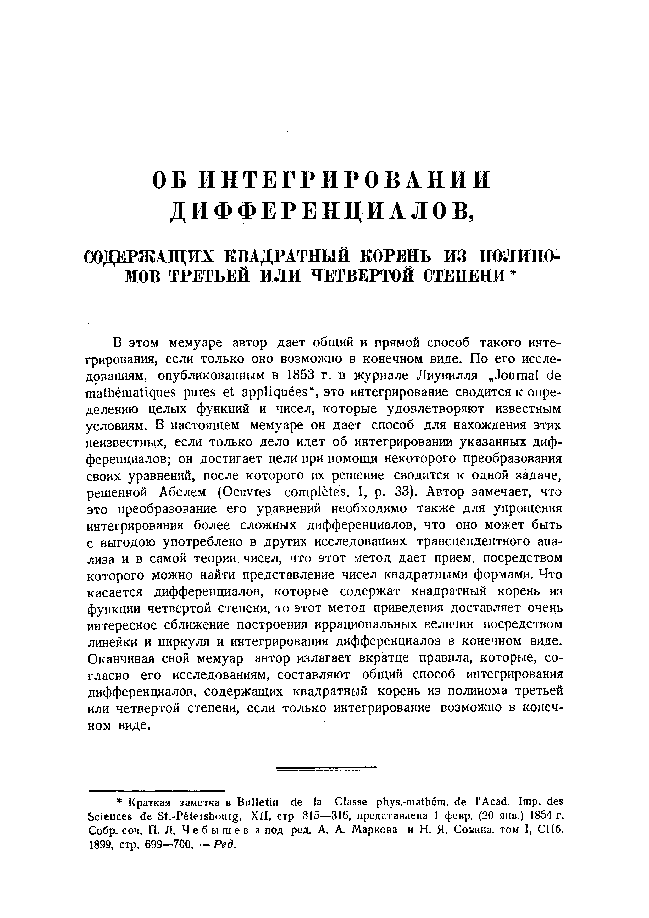 "Избранные работы по инегрированию алгебраических функций из Полн. Собр. Соч" - читать интересную книгу автора (Чебышев П.Л.) |