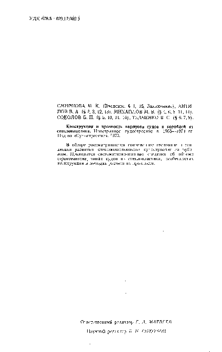 "Конструкция и прочность корпусов судов и кораблей из стеклопластика. Иностранное судостроение" - читать интересную книгу автора |