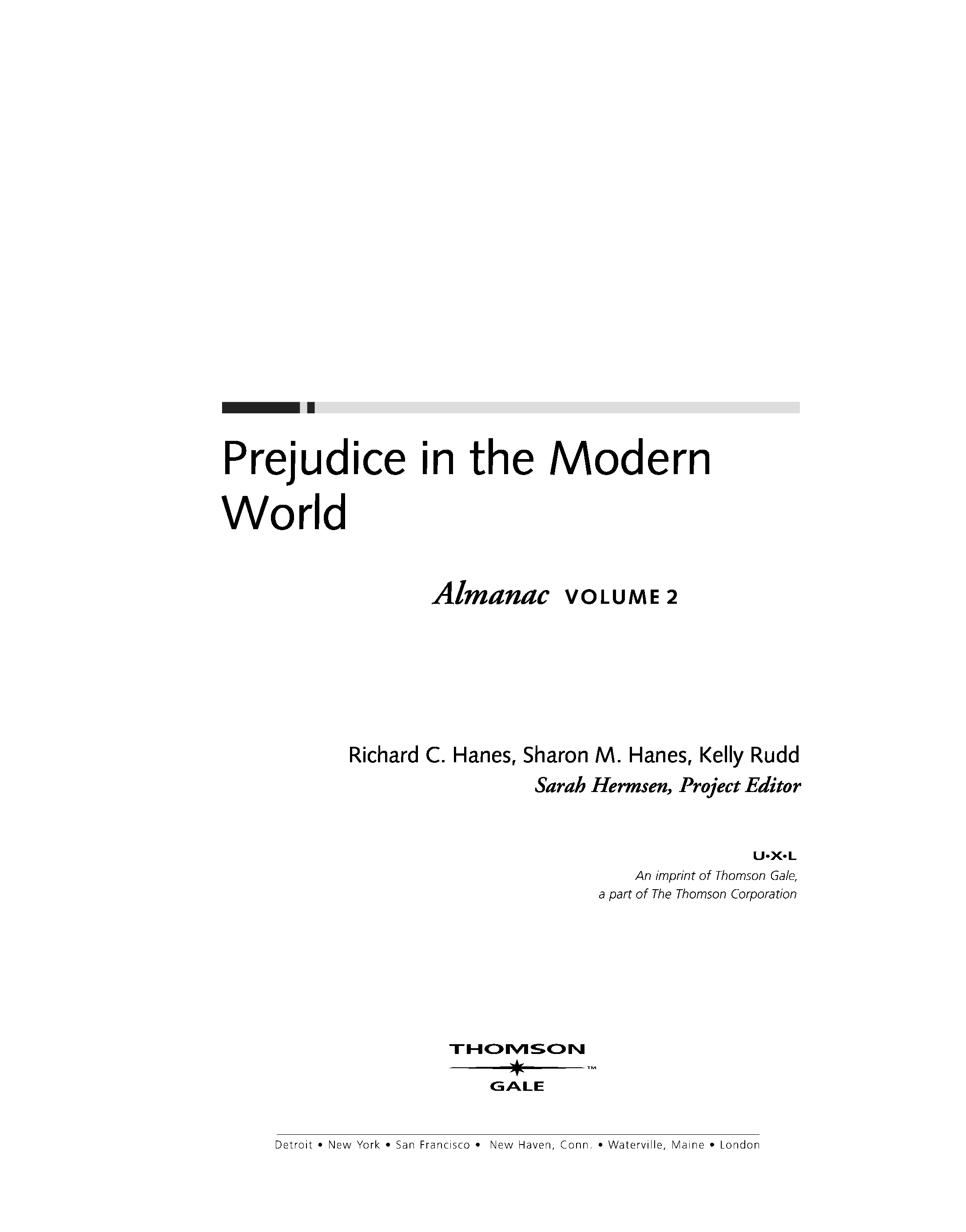 "U.X.L - Prejudice in Modern World Reference Library -Almanac 2" - читать интересную книгу автора (Hanes, Rudd) |