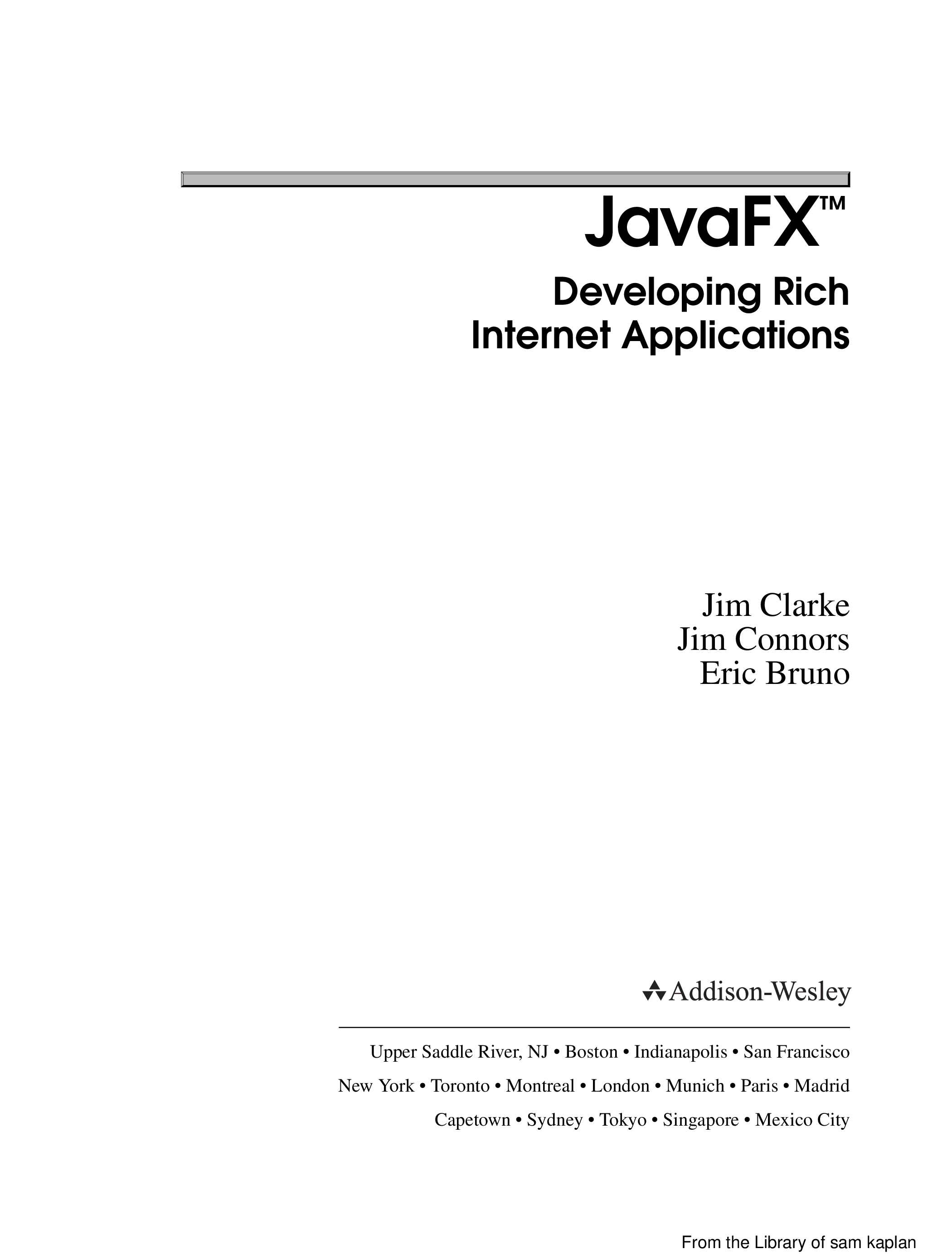 "JavaFX: Developing Rich Internet Applications" - читать интересную книгу автора (Jim Clarke, Jim Connors, Eric J. Bruno) |
