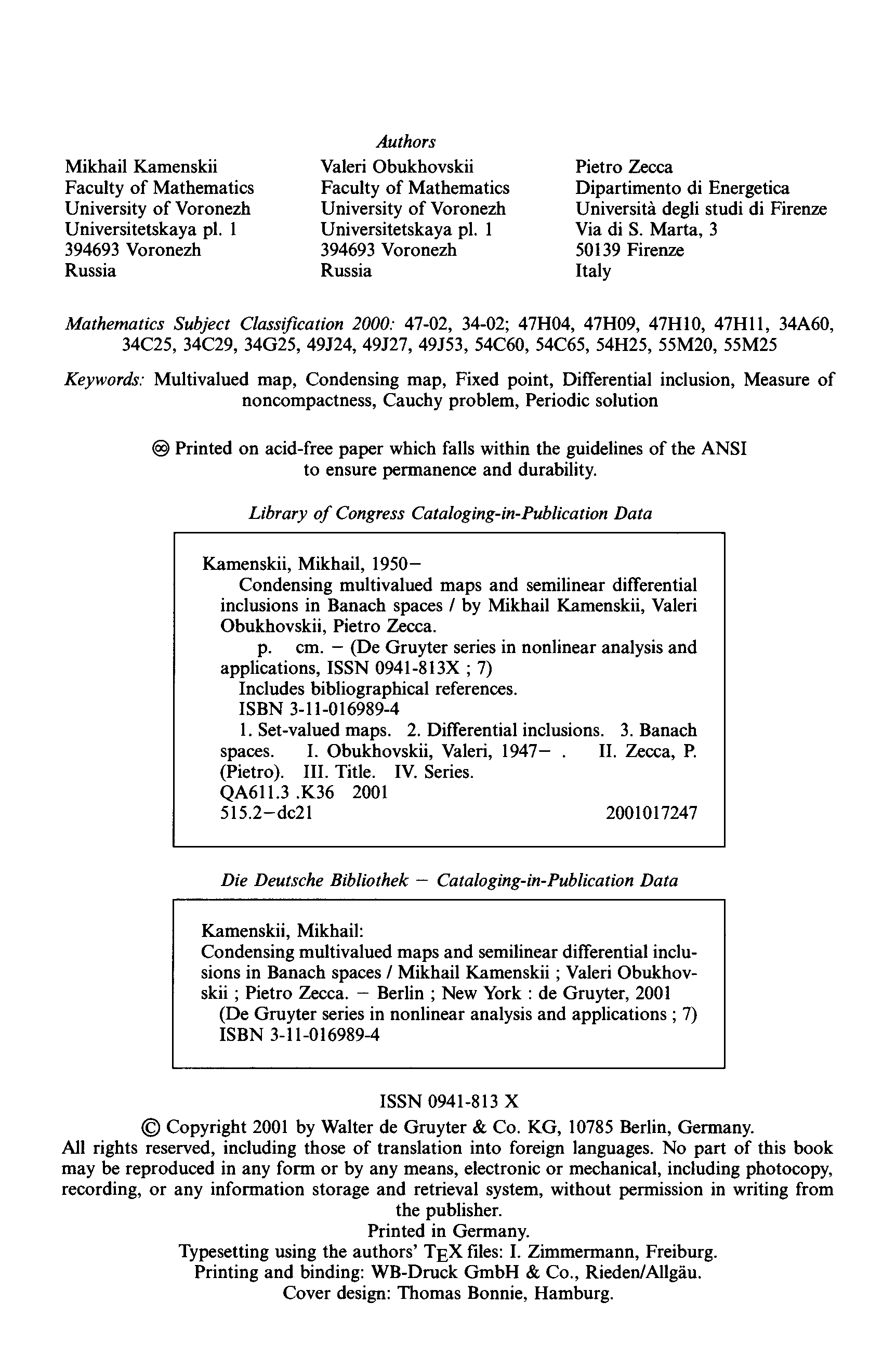 "Condensing Multivalued Maps and Semilinear Differential Inclusions in Banach Spaces (De Gruyter Series in Nonlinear Analysis and Applications, 7)" - читать интересную книгу автора (Mikhail Kamenskii, Valeri Obukhovskii, Pietro Zecca) |
