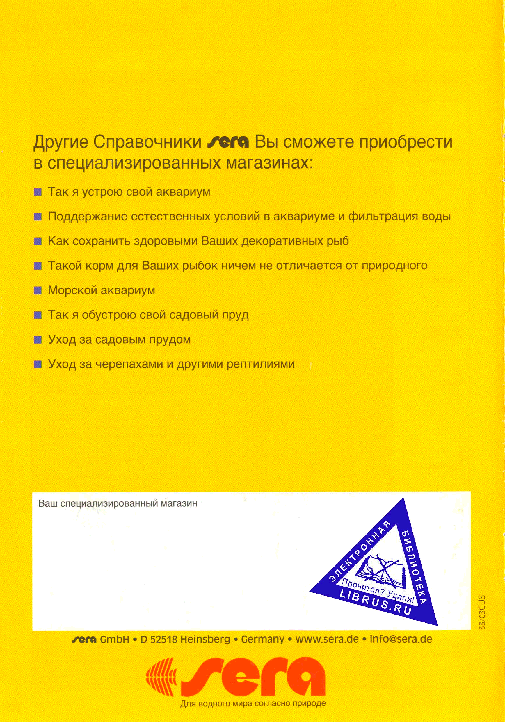 "Тестирование и подготовка воды для естественного водного мира. Справочник Sera" - читать интересную книгу автора |