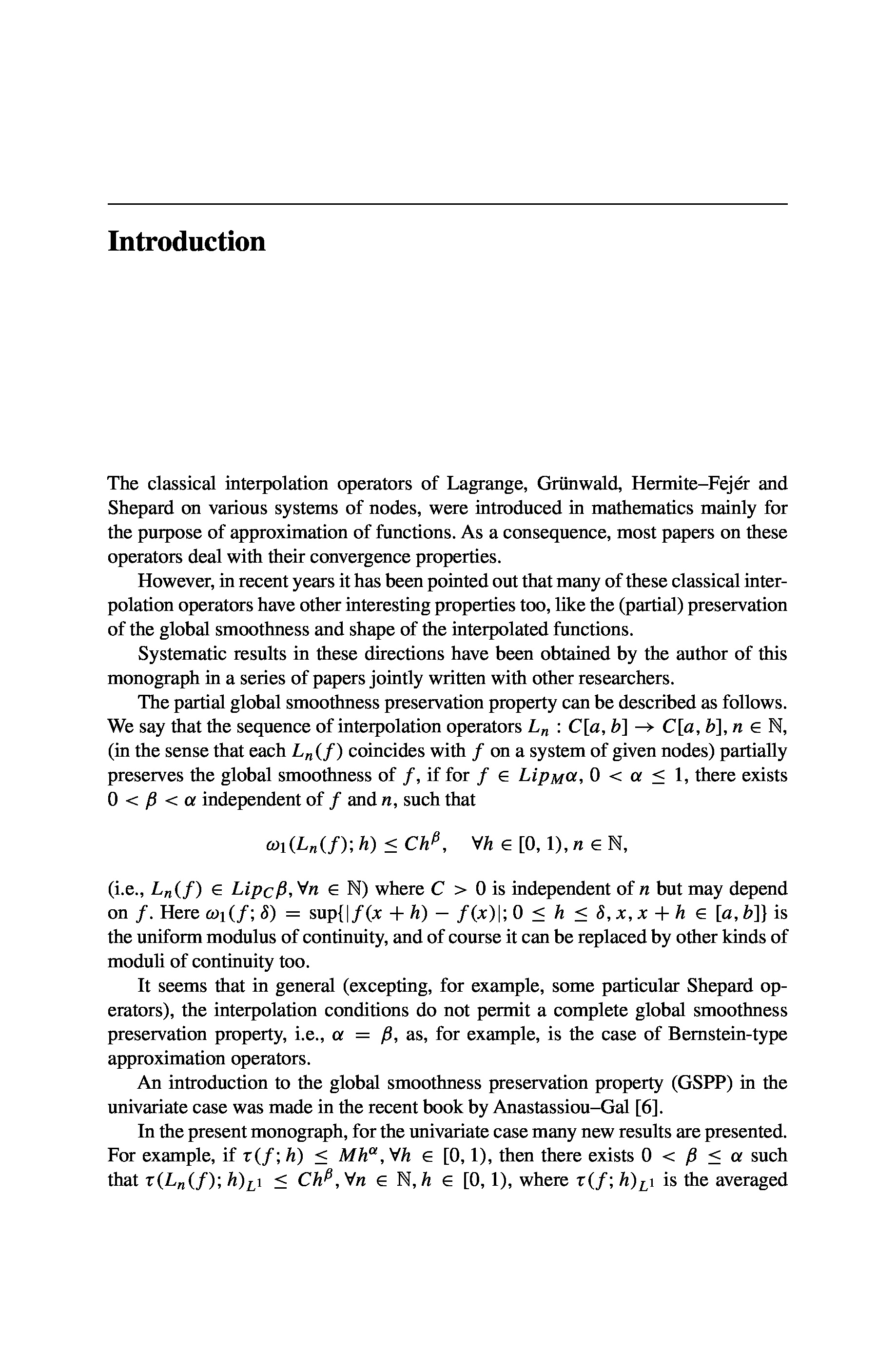 "Global Smoothness and Shape Preserving Interpolation by Classical Operators" - читать интересную книгу автора (Sorin G. Gal, George A. Anastassiou)