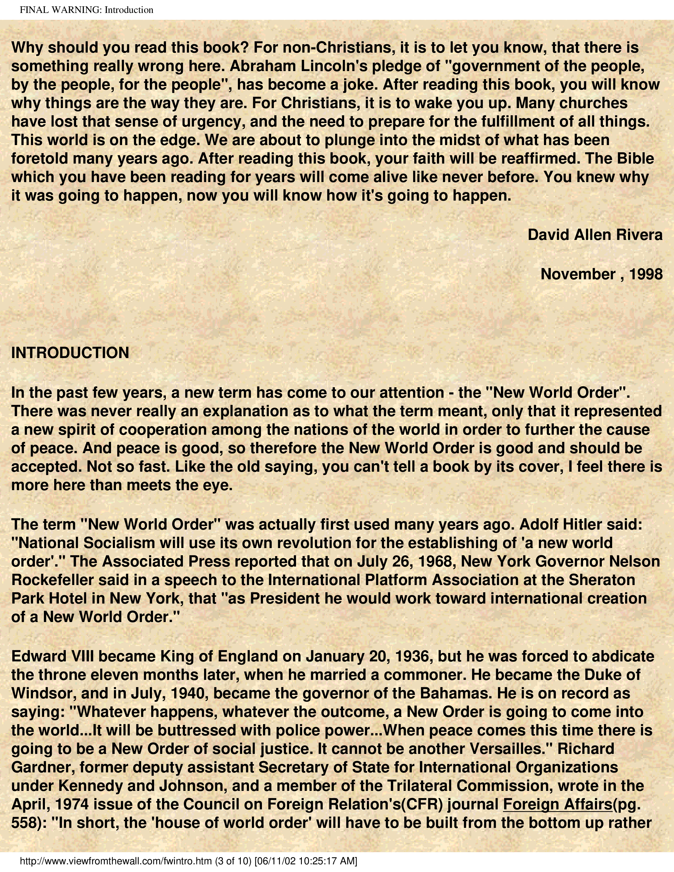 "Final Warning - History of the New World Order" - читать интересную книгу автора