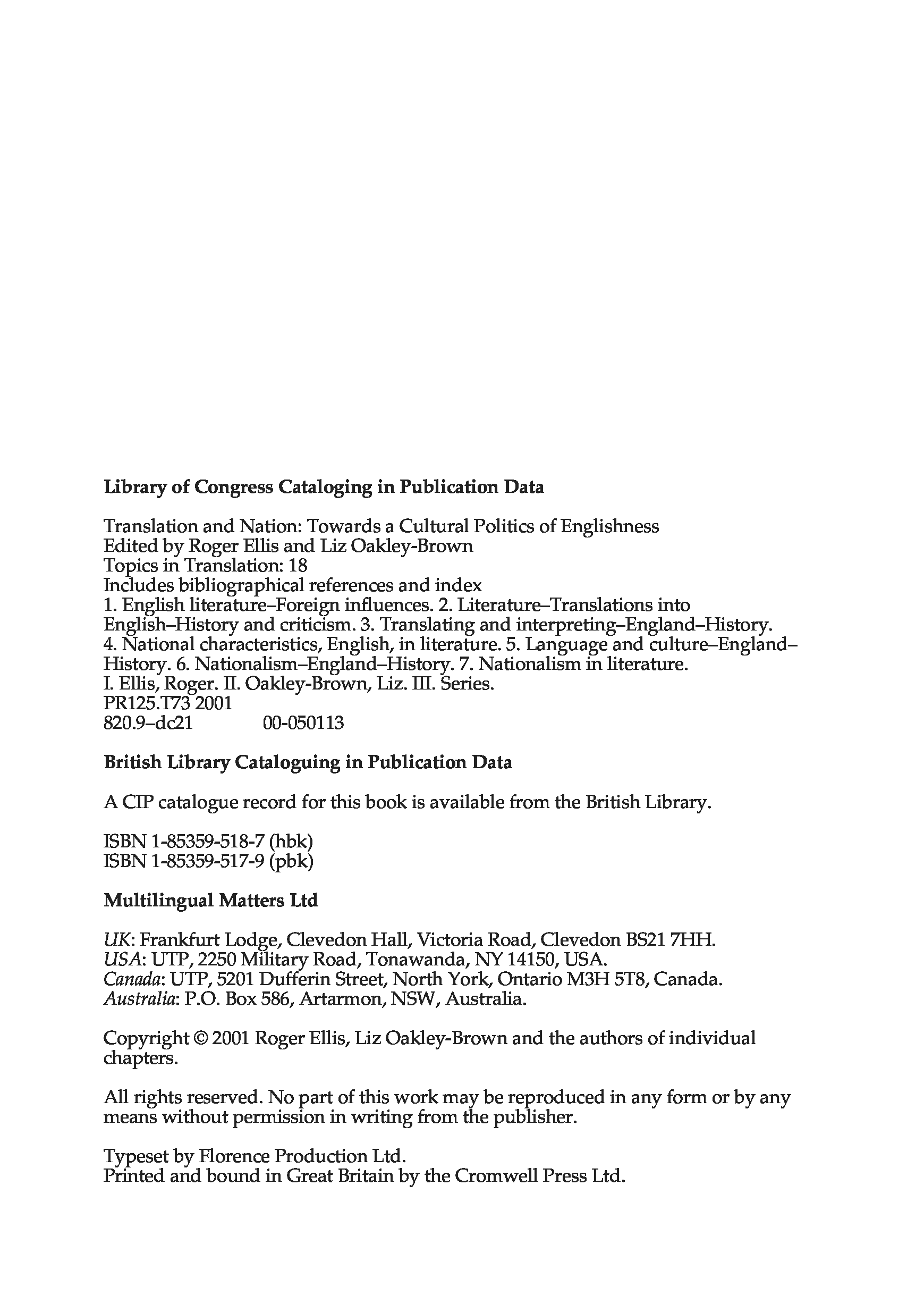 "Translation and Nation: Towards A Cultural Politics of Englishness" - читать интересную книгу автора (Roger Ellis, Liz Oakley-Brown) |