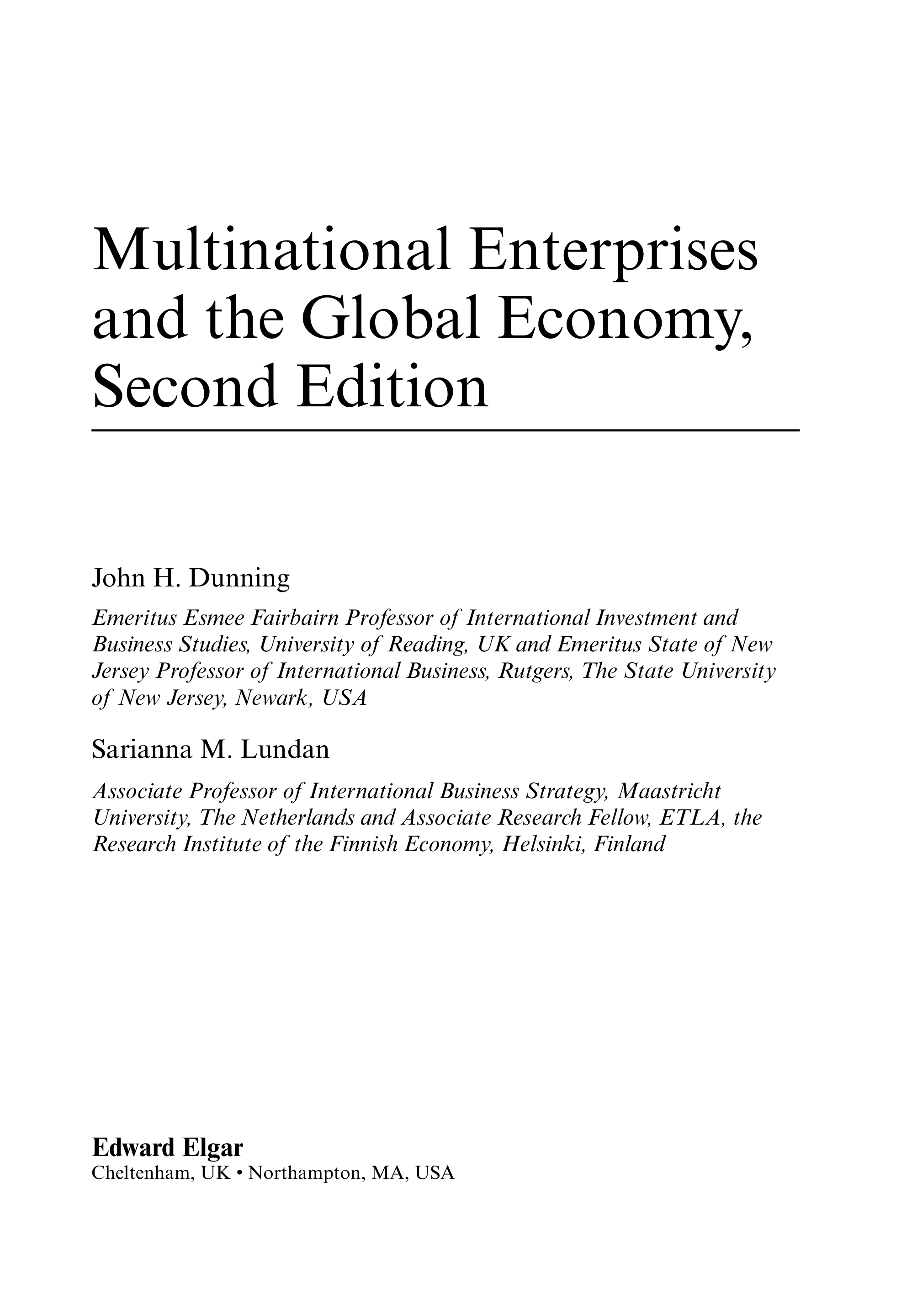 "Multinational Enterprises and the Global Economy" - читать интересную книгу автора (J. H. Dunning, Sarianna M. Lundan) |