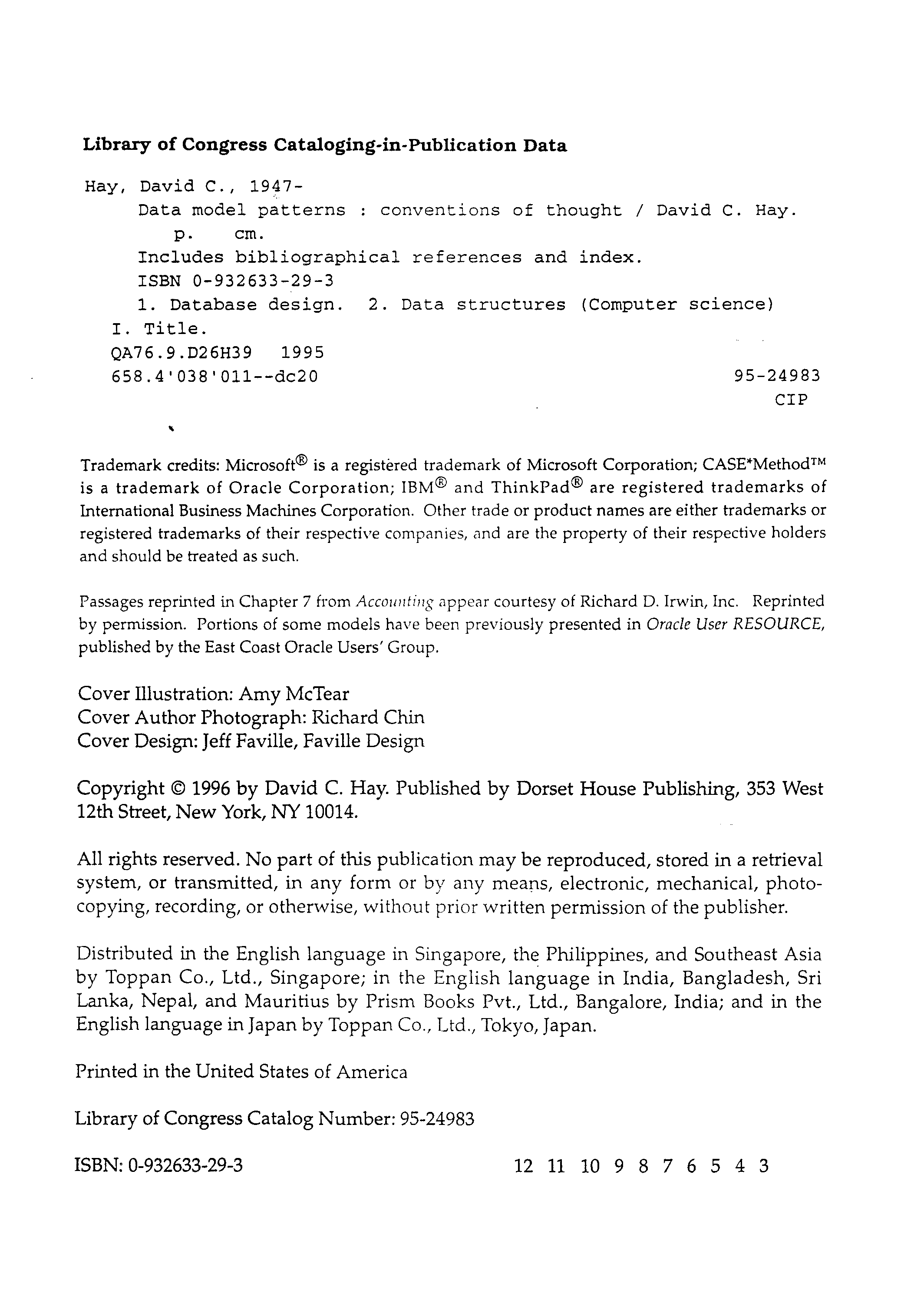 "Data Model Patterns: Conventions of Thought" - читать интересную книгу автора