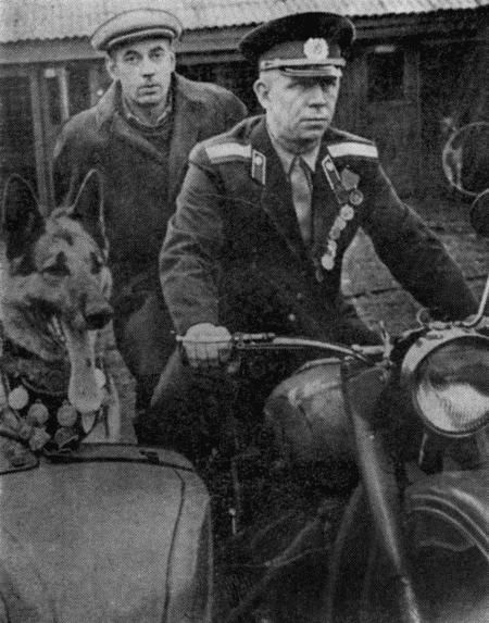Я начал с недостатков. Это естественно, поскольку они меня волнуют больше, чем успехи. И переживаю за некоторых своих товарищей, которые при встречах делятся всем наболевшим. К счастью, в Лысьвенском городском отделе значение службы розыскного собаководства не принижено. Связь с оперативными сотрудниками у меня теснейшая. Меня невниманием не обижают. Участвую в раскрытии самых различных преступлений, разбираю заявления. Меня контролируют, мне помогают, к моим советам прислушиваются. И инициативу проявлять можно. Есть кабинет, хорошее помещение для собаки. Службой доволен. Собачек знаю. Мальчишкой еще держал их. Даже запрягал в санки, картошку возил, сам катался. Когда взяли в Армию, направили меня в пограничники. Служил на заставе в горах немало лет. 5 ноября 1944 года задержал нарушителя, правда, с помощью товарищей. Нарушитель был вооружен до зубов. Мне присвоили звание ефрейтора и направили на учебу в школу младшего начсостава службы собак погранвойск. Окончил школу на «хорошо», снова служил. После демобилизации приехал в Лысьву. Был дорожным мастером, рабочим в жестепрокатном цехе металлургического завода. Перейдя в 1954 году в милицию, получил для воспитания собаку по кличке «Эрик». Он уже был в солидном возрасте, и через два года его списали «на пенсию». Меня же направили участковым в Чусовской район. Я и там не расставался с собаками — с овчаркой, с охотничьей. Они хорошо помогали мне. Нынешний этап службы считаю с 1903 года. В этом году я получил «Рейна». Ему было тогда один год и два месяца. Он имел хорошую родословную, серьезность, злобность и недоверчивость. Сразу по сердцу пришелся мне этот тоненький поджарый пес. Так и хотелось назвать мне его «парнишкой». Дрессировал его 4 месяца. Требовал от «Рейна» многое. Однажды он даже покусал меня. Вскоре мы с «Рейном» стали выезжать на места происшествий. Сейчас ему шестой год. Он ко мне привязан. Не на метр не отпускает от себя. Да и я почти не отлучаюсь от него. Даже в отпуск из Лысьвы не уезжаю никуда. Доверять собаку другому, какой бы он ни был опытный — нельзя. Тренировки у нас постоянные. Кормлю хорошо. Выгуливаю. За заботу «Рейн» платит исправной службой. Вот примеры. В Лысьве на одной из улиц глубокой ночью был обнаружен заваленный бревнами, с признаками насильственной смерти труп гр. Морозовой. После звонка в милицию я выехал в составе опергруппы на место. «Рейн», примененный от следов, пройдя в усложненных условиях городской местности несколько километров, в проливной дождь, вывел к дому на ул. Кольцова. Я и оперативные работники младший лейтенант милиции Р. Кочнев и Л. Васюков задержали убийцу. След позже был проверен еще раз второй собакой. Он привел туда же. Недавно опергруппа задерживала преступника, у которого в одной руке было ружье, в другой — обрез. Он открыл стрельбу по нам. Наши открыли наружную дверь в ограду и дверь из огорода. «Заходите», — кричит преступник, ругаясь на чем свет стоит. Я вскочил в сени, укрылся за косяк, заслонив собой «Рейна». Но вот опять выстрел. Дробь, к счастью, прошла мимо меня и сержанта Плетенева. В следующие секунды собака сбила с ног преступника, покусала. Не дремали и мы. Злодей был обезоружен. Совсем недавно, в апреле мы с «Рейном» предупредили грабеж. В первом часу ночи шли мы на окраине города по пустырю. Под ногами был сырой снег, большие протал