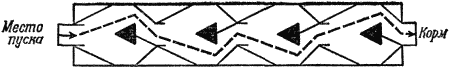 "Думают ли животные?" - читать интересную книгу автора (Фишель Вернер)Формы научения«Животная гипотеза»Возможно, иному читателю трудно понять, что подразумевает заголовок этой главы, а подзаголовок может вообще показаться полнейшей загадкой. Между тем нам не обойтись без научной терминологии, если мы не хотим, чтобы рассмотрение вопроса о возможности мышления животных превратилось в поверхностный разговор. Попытаюсь сформулировать это предельно ясно и просто. То, что делает животное, когда перед ним поставлена задача выбора, является, как правило, прямолинейным движением к объекту. Им и руководствуется животное. Исследователя интересуют только те объекты, которые направляют животное, а не характер его движений. Подходит ли животное быстро или медленно, кратчайшим путем или по кривой, исследователя, как правило, не интересует. Он охотно регистрирует «правильное решение задачи», когда животное обращается к дозволенному объекту, и отмечает «ошибку», если оно направляется к другому. Поведение ничему не обученного животного иногда, но далеко не всегда определяется случайностью. Статистика показывает, что если в 100 случаях выбора из двух равных возможностей одной из них будет отдано предпочтение в 49 случаях, а другой — в 51 случае, то такой результат следует приписать исключительно случайности. Для зоопсихологических исследований в США, как и в других странах, используют преимущественно белых крыс. Их легко разводить, и они очень неприхотливы в еде. Многократно проводимые на животных испытания по выбору являются своеобразными тестами. Эксперимент облегчается, когда пункты, где животное должно принять какое-то решение, располагают друг за другом, так что животное после первого решения сразу же должно принимать второе, затем третье и т. д. На рис. 26 ясно показано, о чем идет речь. На пути от клетки к кормушке на другом конце лабиринта (этот путь показан штриховой линией) крыса попадает в 4 пункта, откуда она может идти дальше либо направо, либо налево. Повернув перед первым треугольником налево, она обеспечивает себе проход дальше. Если она повернет направо, то натолкнется на преграду и должна возвратиться назад — она совершила «ошибку». Опыт прохождения лабиринта она приобретает только с помощью проб и ошибок.