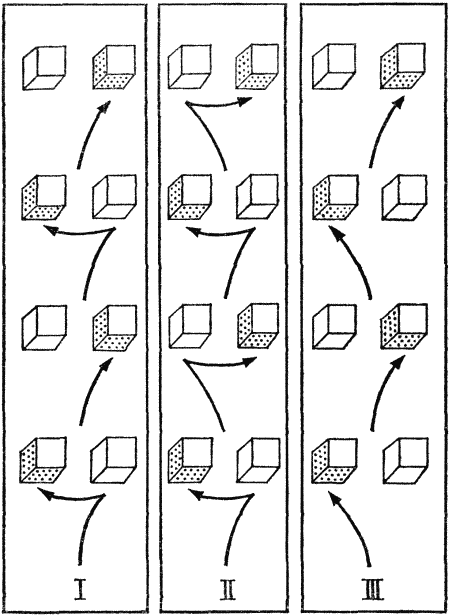 Чтобы облегчить крысе процесс научения, ей создавали условия, в которых она могла как-то различать правую и левую стороны лабиринта. Это легко достигалось с помощью применения искусственного освещения различной интенсивности: свободный проход освещался слабее, а закрытый — несколько ярче. Обычно мы в таких случаях говорим, что крыса дрессировалась на темную сторону пункта принятия решения. Большинство крыс быстро научилось находить нужную сторону. По мере накопления опыта более слабый свет становится манящим признаком. После 20 попыток все чаще принимаются «правильные» решения и реже «неправильные», пока, наконец, первые не составят 90 %. Само собой разумеется, что случайная невнимательность крысы может время от времени являться причиной ошибки и после хороших результатов. Успешная дрессировка крыс на различение темного и светлого не дала ничего нового по сравнению с тем, что уже было получено при дрессировке на выбор. Между тем одному американскому ученому пришла в голову довольно странная идея. Он поставил перед своими крысами, как он говорил, неразрешимую проблему. Проходимой была не только темная сторона, а вне всякой очередности то темная, то светлая. Крыса, которая после пункта принятия решения прошла по темной стороне, при следующем принятии того же решения в очередном пункте терпела неудачу. Из-за отсутствия какой бы то ни было последовательности в освещении лабиринта животные, а их исследовалось множество, вообще ничему не научились. Как и следовало ожидать, в половине случаев крыса выбирала темную сторону, а в половине — светлую. Могло показаться, что крысы действовали только по воле случая. В действительности все было совсем не так. Более тщательное изучение принятых крысами решений привело к весьма любопытному результату. Оказалось, что поведение крыс четко разделялось на следующие формы: 1. Крыса могла 5 раз подряд выбирать, например, более темную сторону. 2. Подобным же образом она многократно выбирала более светлый путь. И в том и в другом случае она не раз настойчиво пробовала по одному из этих признаков идти дальше, но ее попытки терпели неудачу из-за отсутствия последовательности в освещении лабиринта. 3. Много раз подряд крысы выбирали попеременно то правый, то левый путь. Эта форма поведения называется чередующимся выбором. Случайностью его объяснить нельзя. Поскольку и эта форма поведения приводила к разочарованиям, животные переходили к другой, например следующей, форме поведения. 4. Подопытные животные несколько раз подряд, скажем три или шесть раз, шли все время по одной стороне. Ею могла быть правая, а могла быть и левая сторона. При принятии подобного решения мы говорим о постоянстве выбора стороны у животных. Из этого непреложно вытекает, что крыса проверяла результат не одного отдельно взятого и затем независимо от него принятого следующего способа решения, а сразу целой серии одинаковых способов решения. Если бы животное могло говорить, то оно, вероятно, сказало бы: «Попробую, а нельзя ли добиться успеха, держась одной правой стороны!» При иной форме поведения оно объяснило бы, что хотело попробовать, нельзя ли пройти дальше, двигаясь попеременно то по правой, то по левой стороне. Но оставим пока эти теоретически очень сложные вопросы. Мне бы хотелось рассказать вам о результатах собственных эк