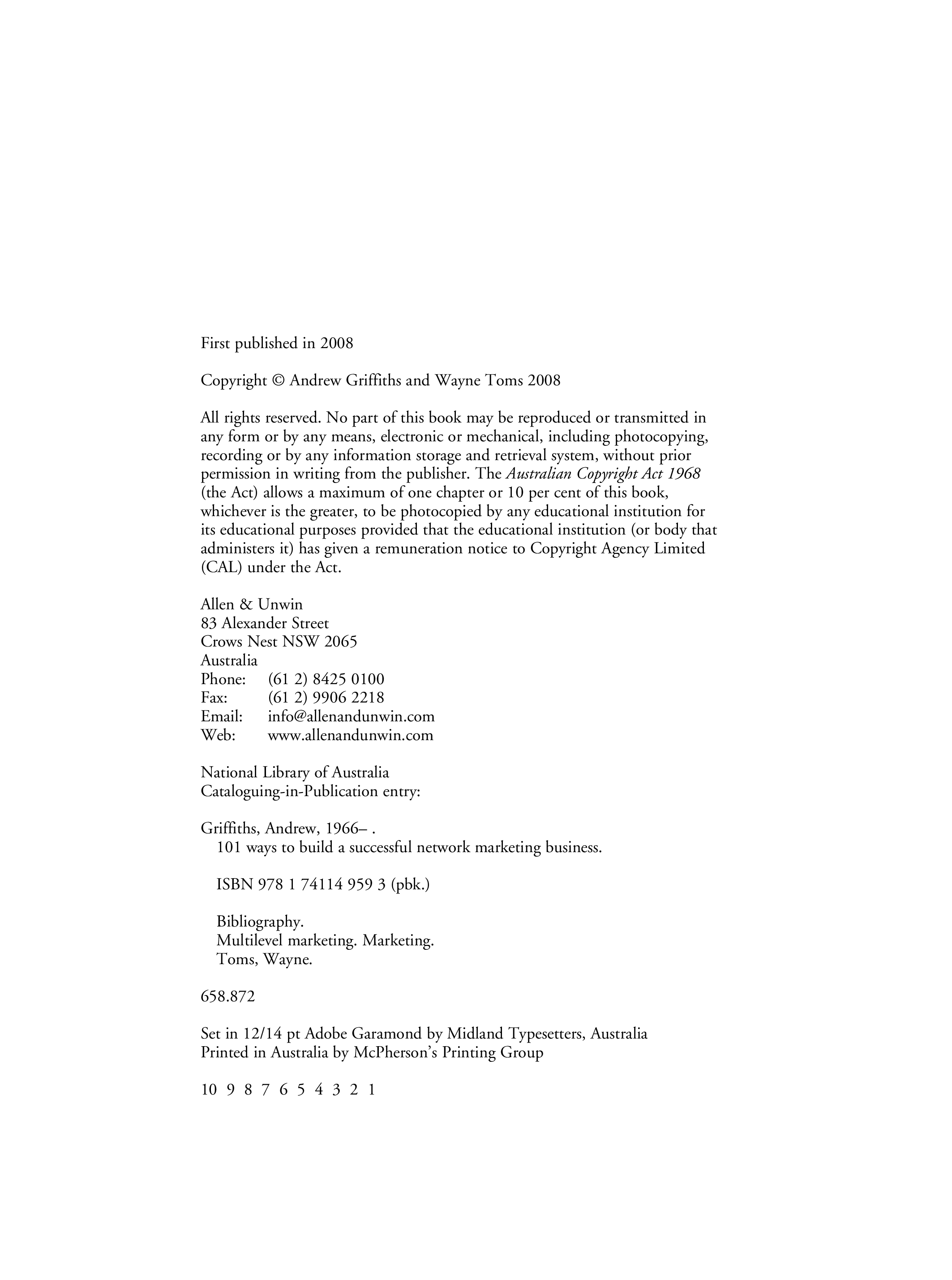 "101 Ways to Build a Successful Network Marketing Business (101 Ways series" - читать интересную книгу автора (Andrew Griffiths, Wayne Toms) |