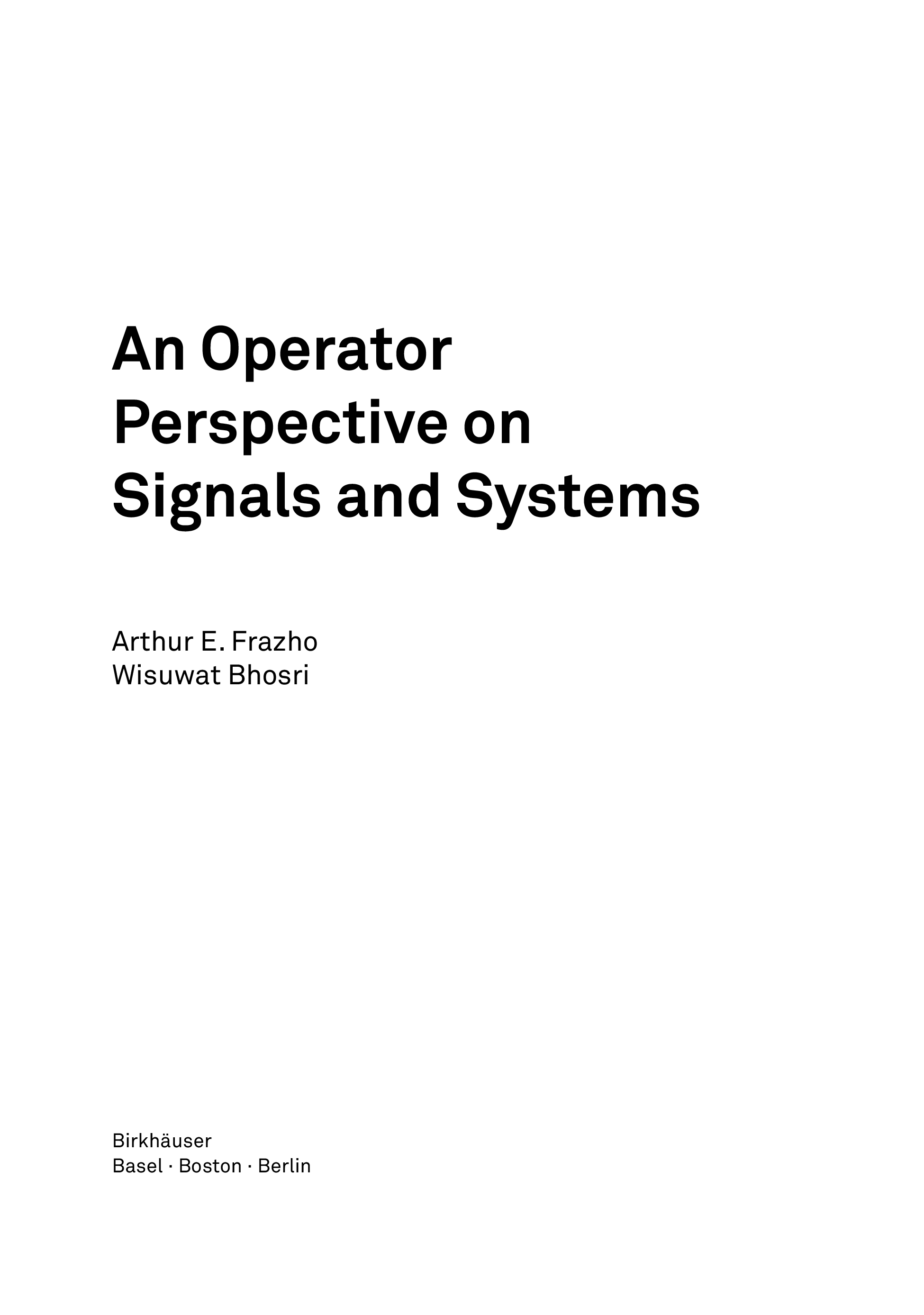 "An Operator Perspective on Signals and Systems (Operator Theory: Advances and Applications / Linear Operators and Linear Systems)" - читать интересную книгу автора (Arthur Frazho, Wisuwat Bhosri) |