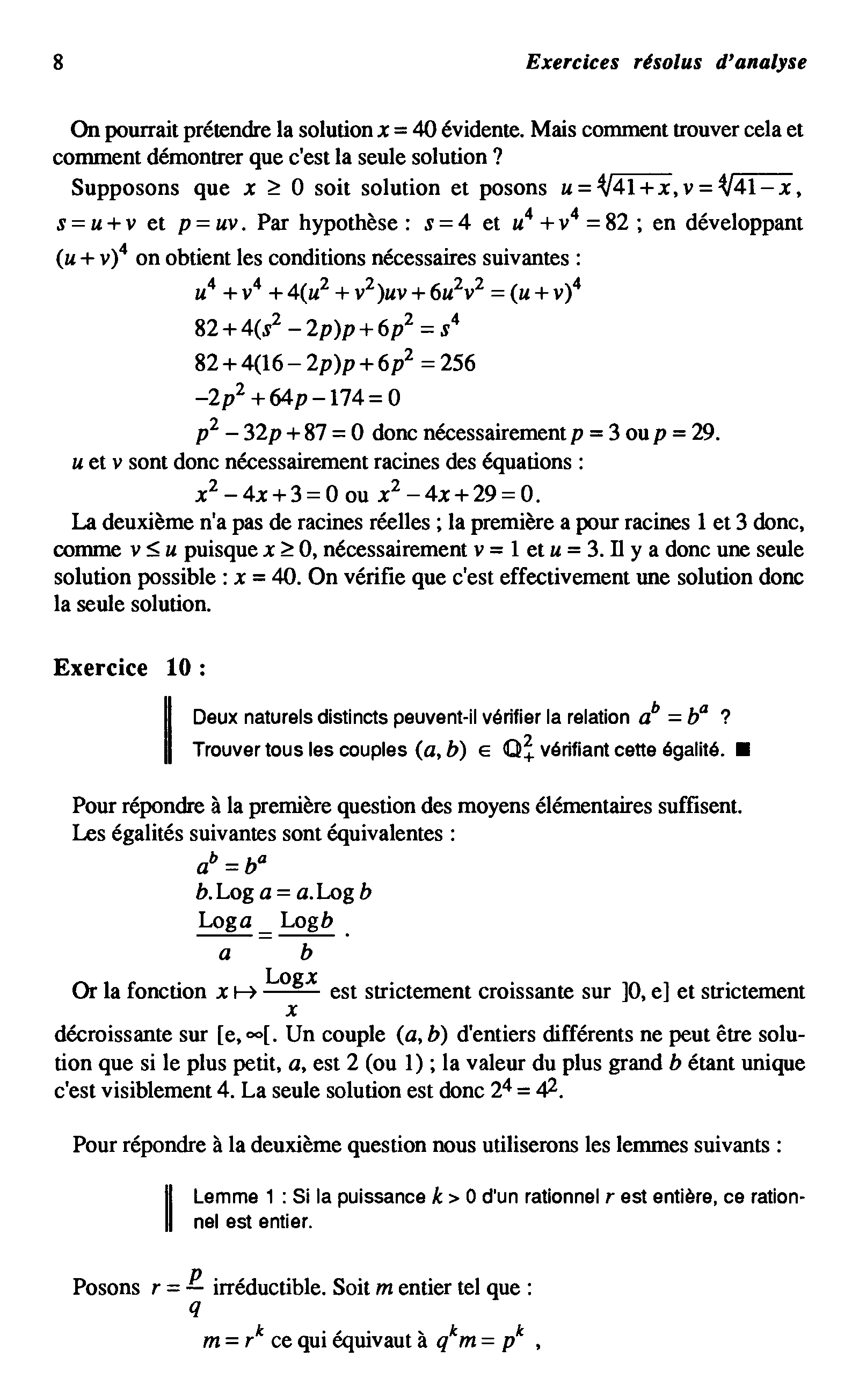 "Exercices résolus d'analyse du cours de mathématiques" - читать интересную книгу автора