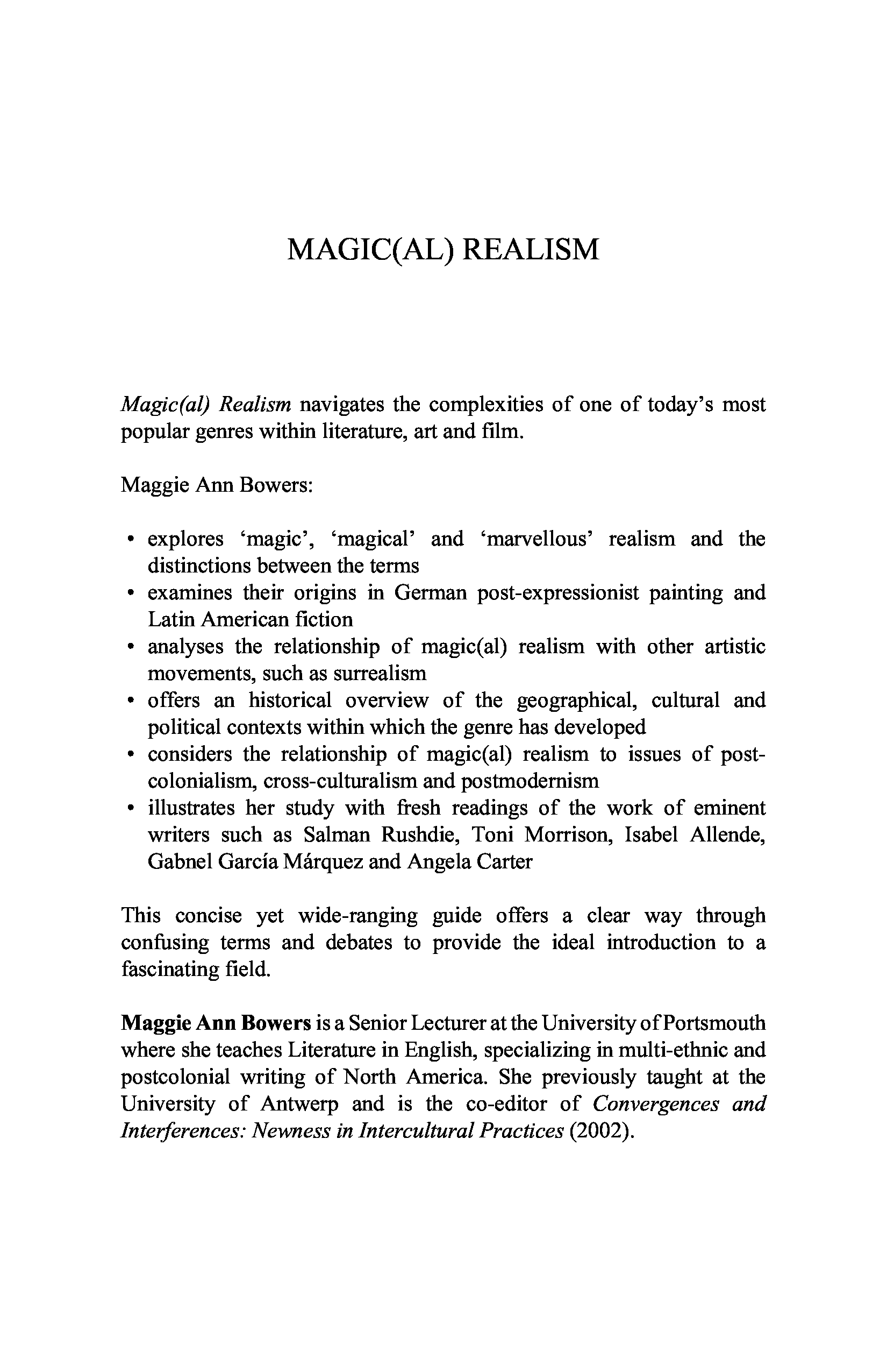 "Magic(al) Realism (The New Critical Idiom)" - читать интересную книгу автора (Maggie Ann Bowers)
