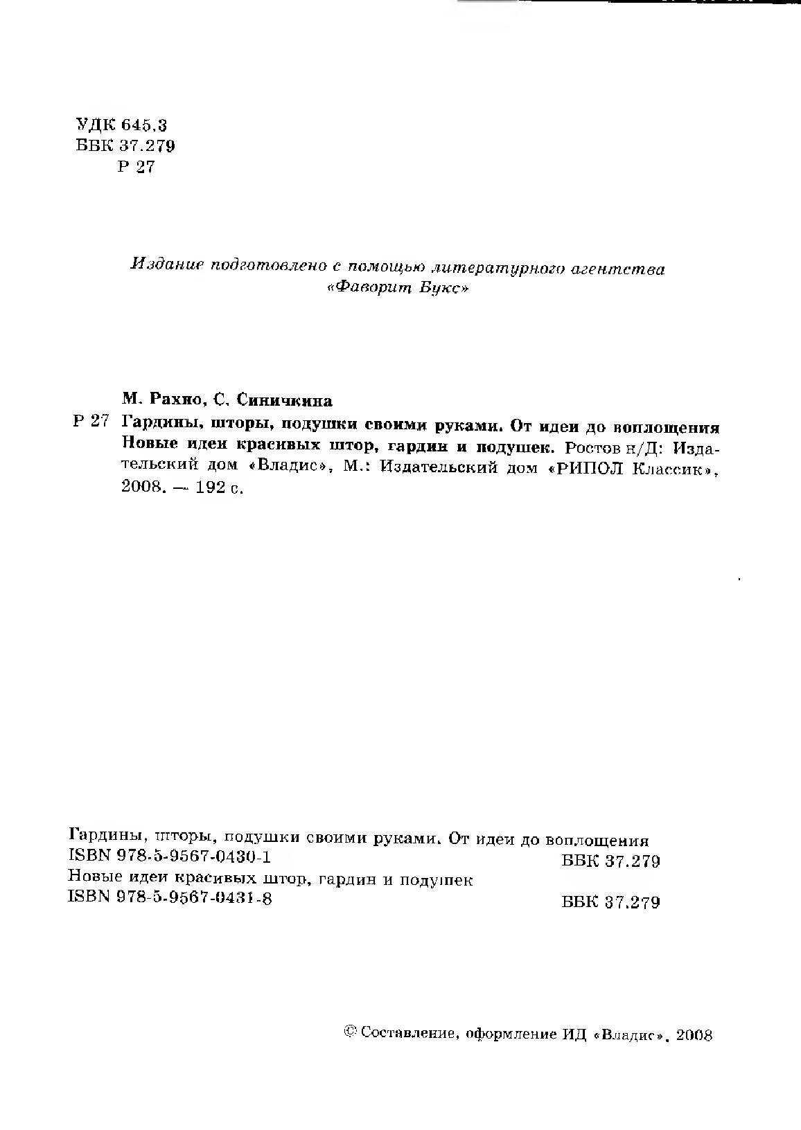 "Новые идеи красивых штор, гардин и подушек своими руками" - читать интересную книгу автора (М. Рахно, С. Синичкина) |