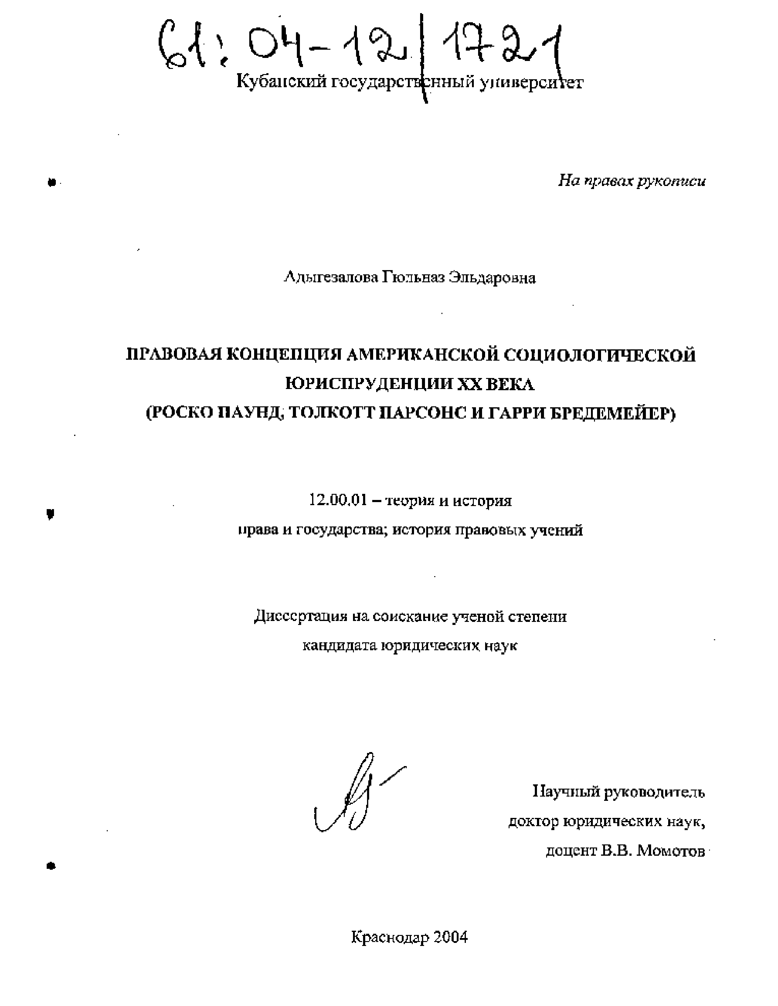 "Правовая концепция американской социологической юриспруденции XX века (Роско Паунд, Толкотт Парсонс и Гарри Бредемейер)" - читать интересную книгу автора (Адыгезалова Г.Э.)