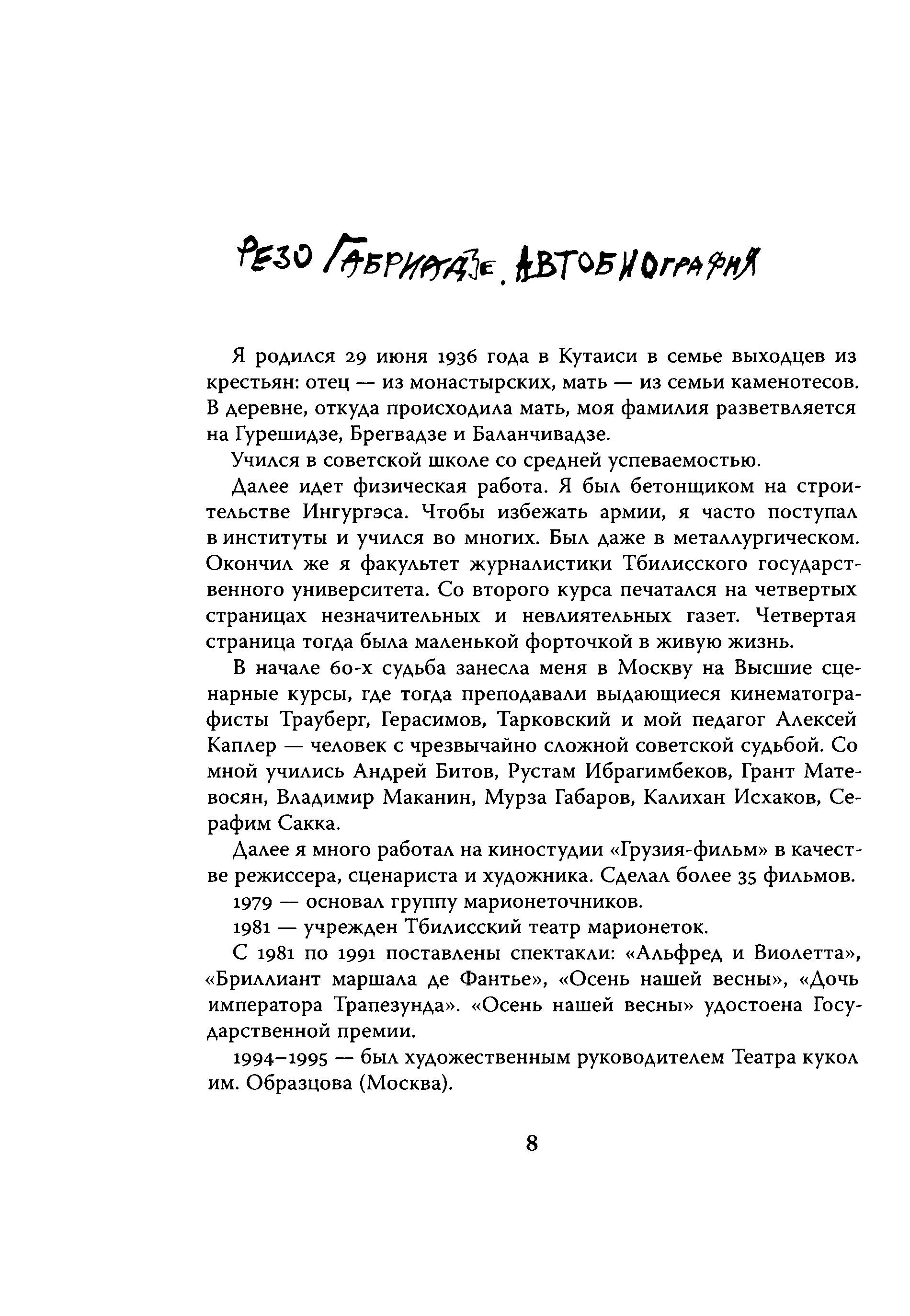 "Театр Резо Габриадзе. История тбилисских марионеток и беседы с Резо Габриадзе о куклах, жизни и любви." - читать интересную книгу автора (Дмитревская М. Ю.)