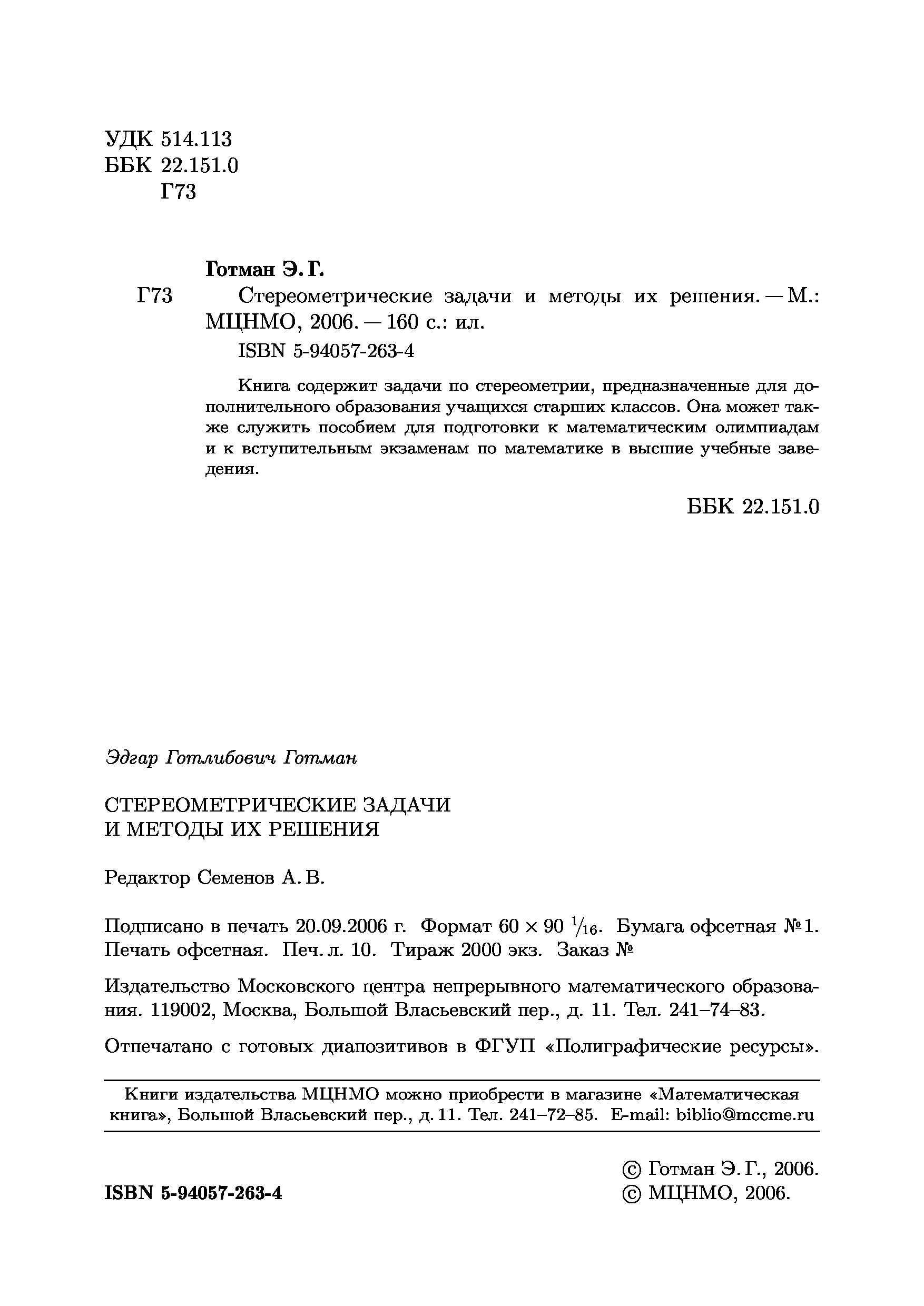 "Стереометрические задачи и методы их решения" - читать интересную книгу автора (Готман Э.Г.)