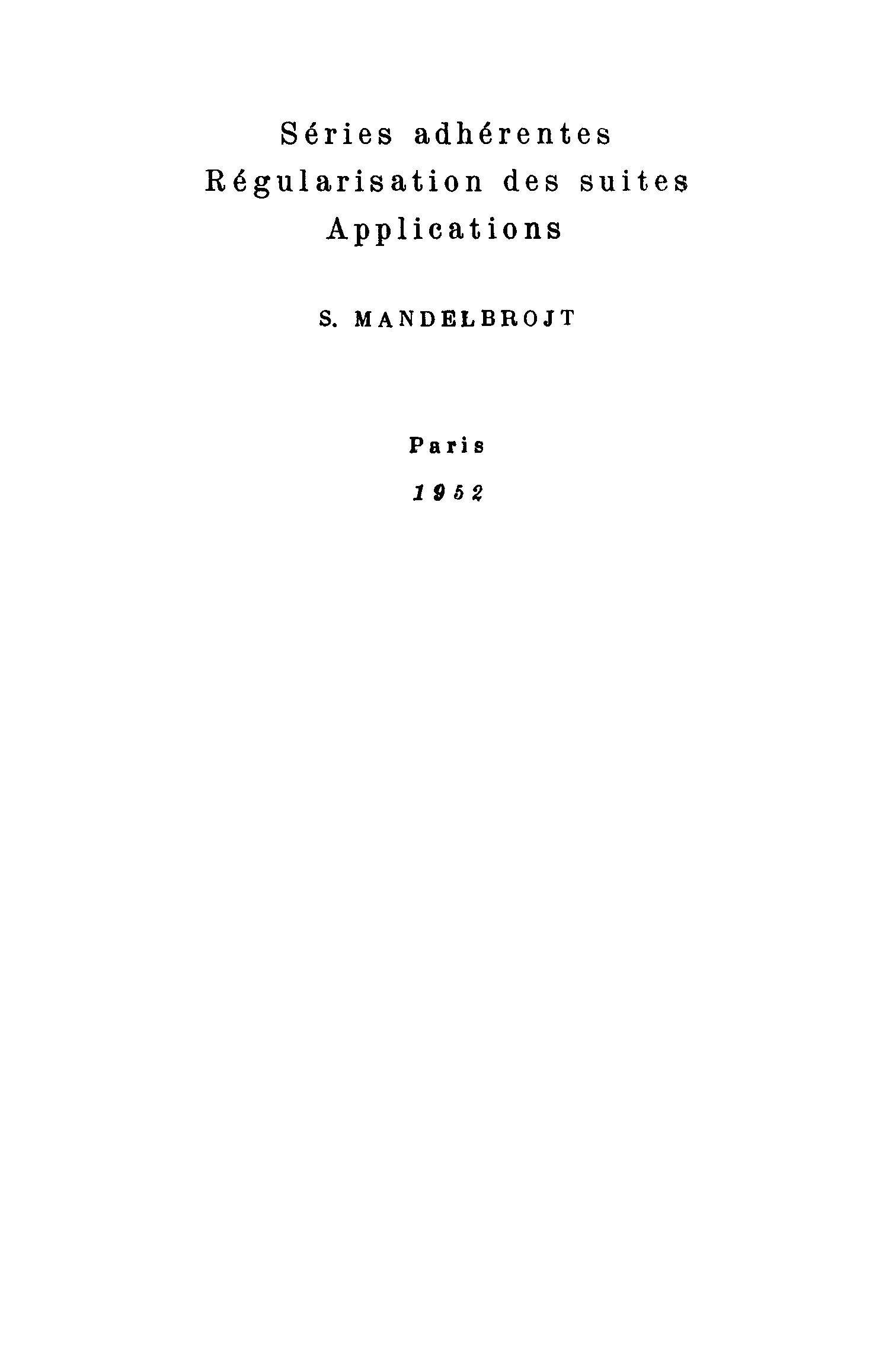 "Примыкающие ряды. Регуляризация последовательностей. Применения" - читать интересную книгу автора (Мандельбройт С.(Mandelbrojt))
