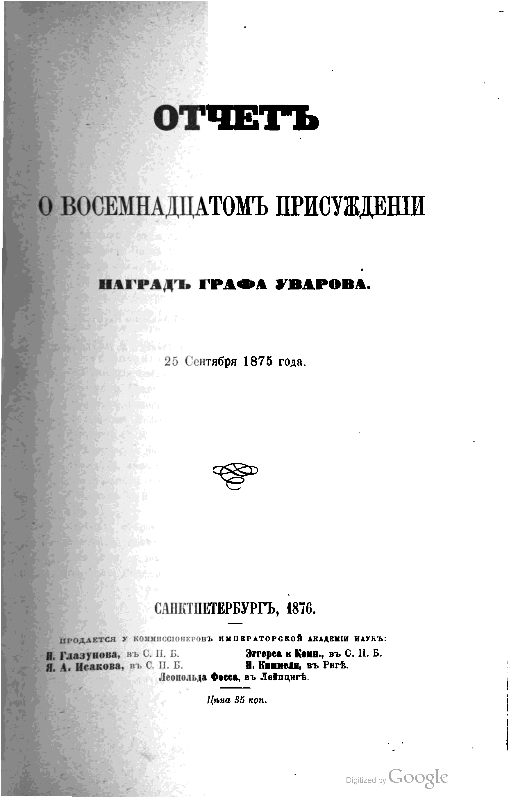 "Отчет о 18-м присуждении наград графа Уварова" - читать интересную книгу автора