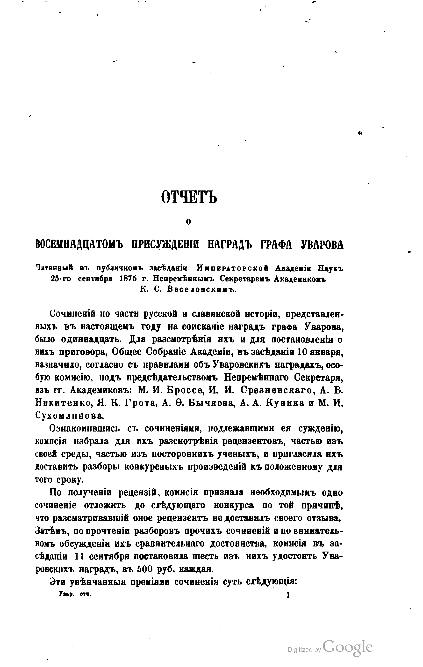 "Отчет о 18-м присуждении наград графа Уварова" - читать интересную книгу автора