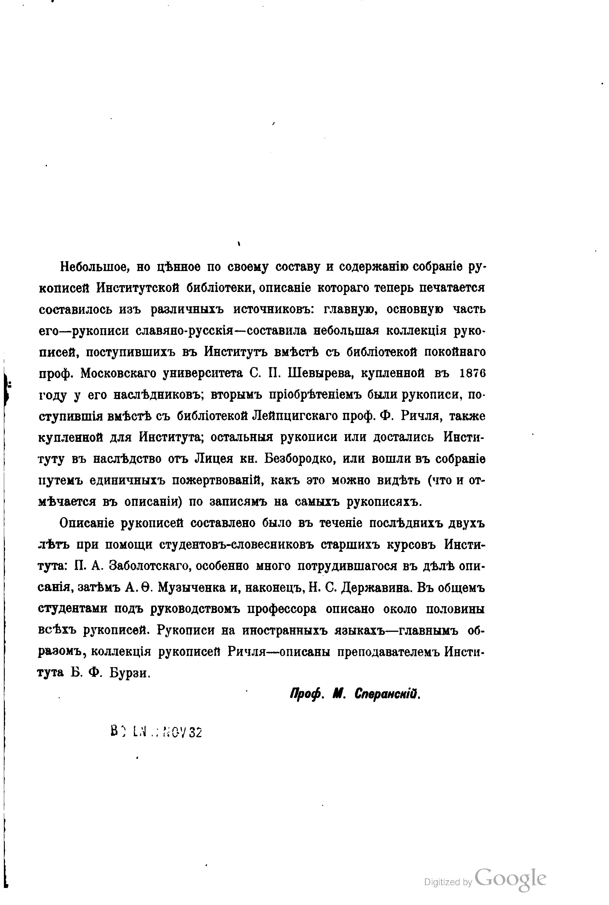 "Опись рукописей библиотеки ист-фил ин-та князя Безбородко в г. Нежине" - читать интересную книгу автора (Сперанский М.)