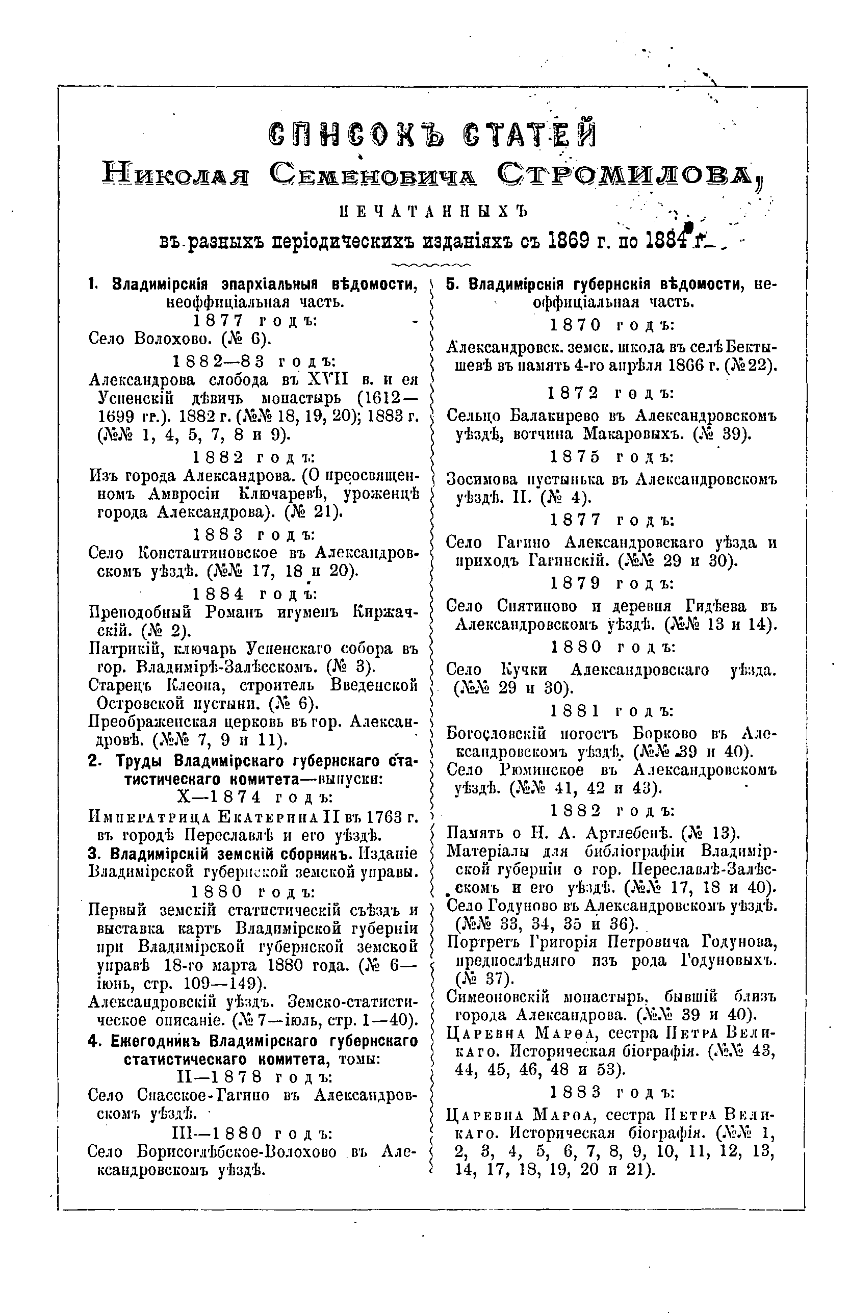 "Володимерщина Росписй печатанного о Владимирской епархии и губернии" - читать интересную книгу автора (Стромилов Н.С.) |