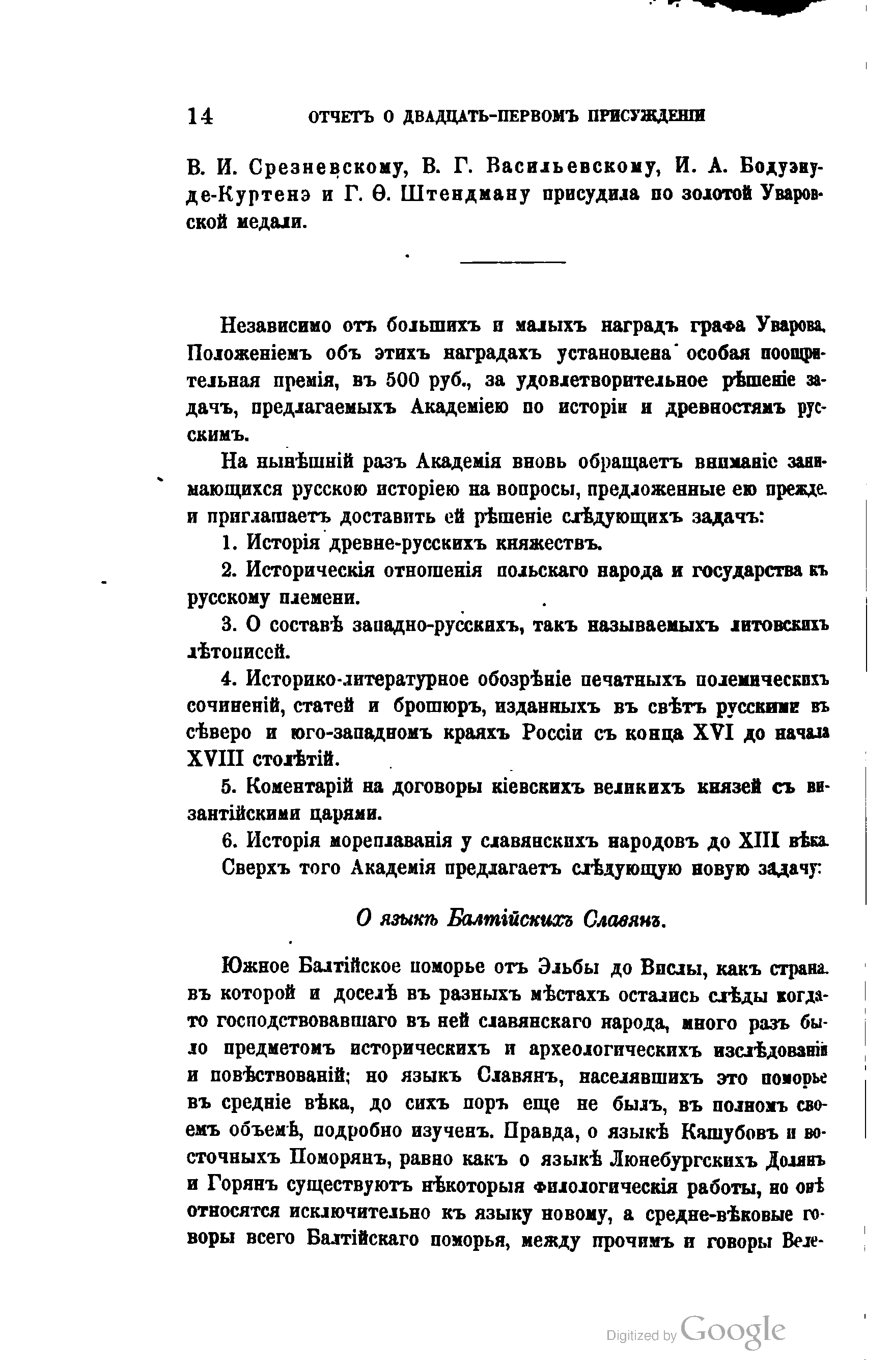 "Отчет о 21-м присуждении наград графа Уварова" - читать интересную книгу автора