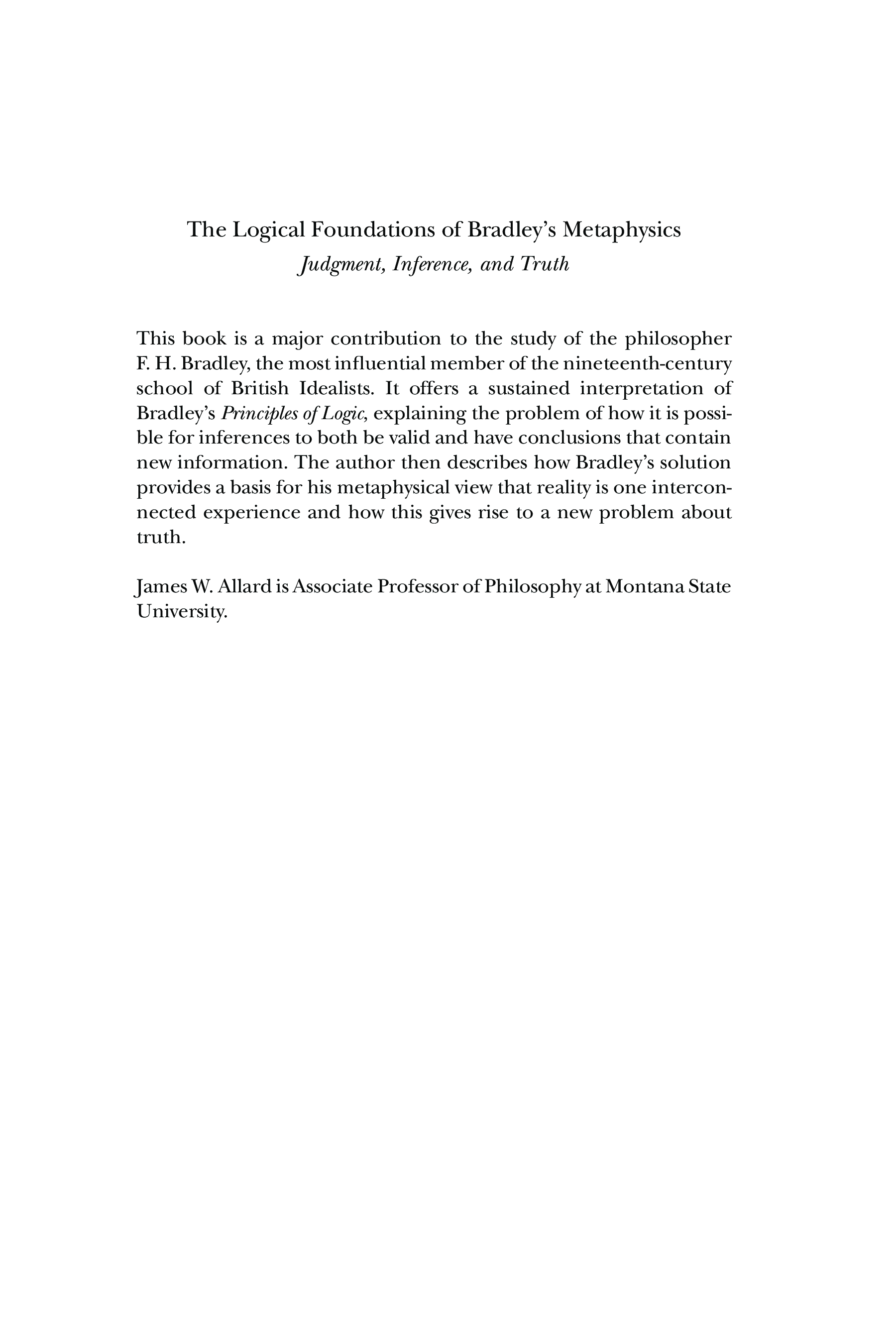"The Logical Foundations of Bradley's Metaphysics: Judgment, Inference, and Truth" - читать интересную книгу автора (James Allard) |