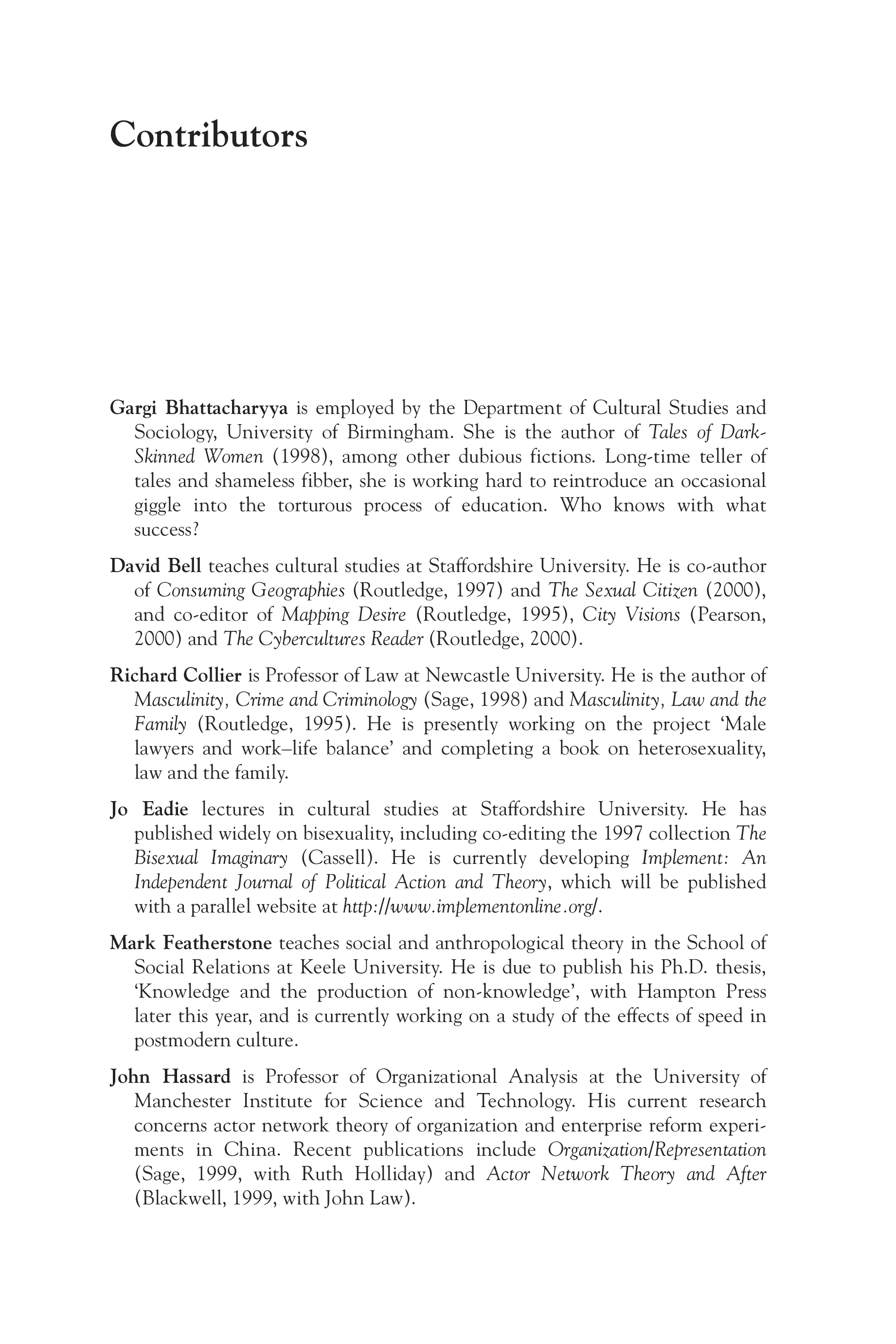(John Hassard, Ruth Holliday)