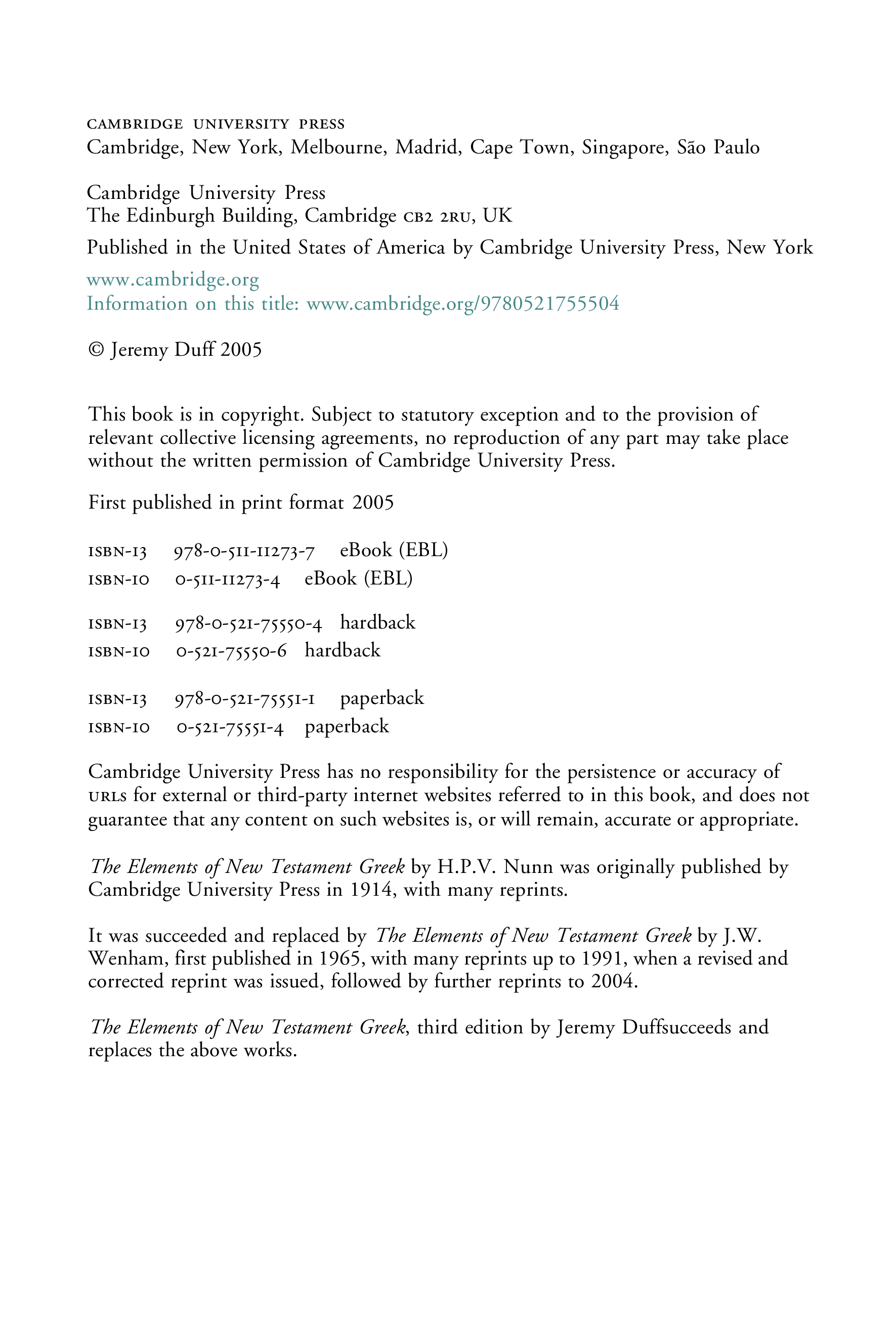 "The Elements of New Testament Greek, Third Edition" - читать интересную книгу автора (Canon Dr Jeremy Duff, David Wenham) |