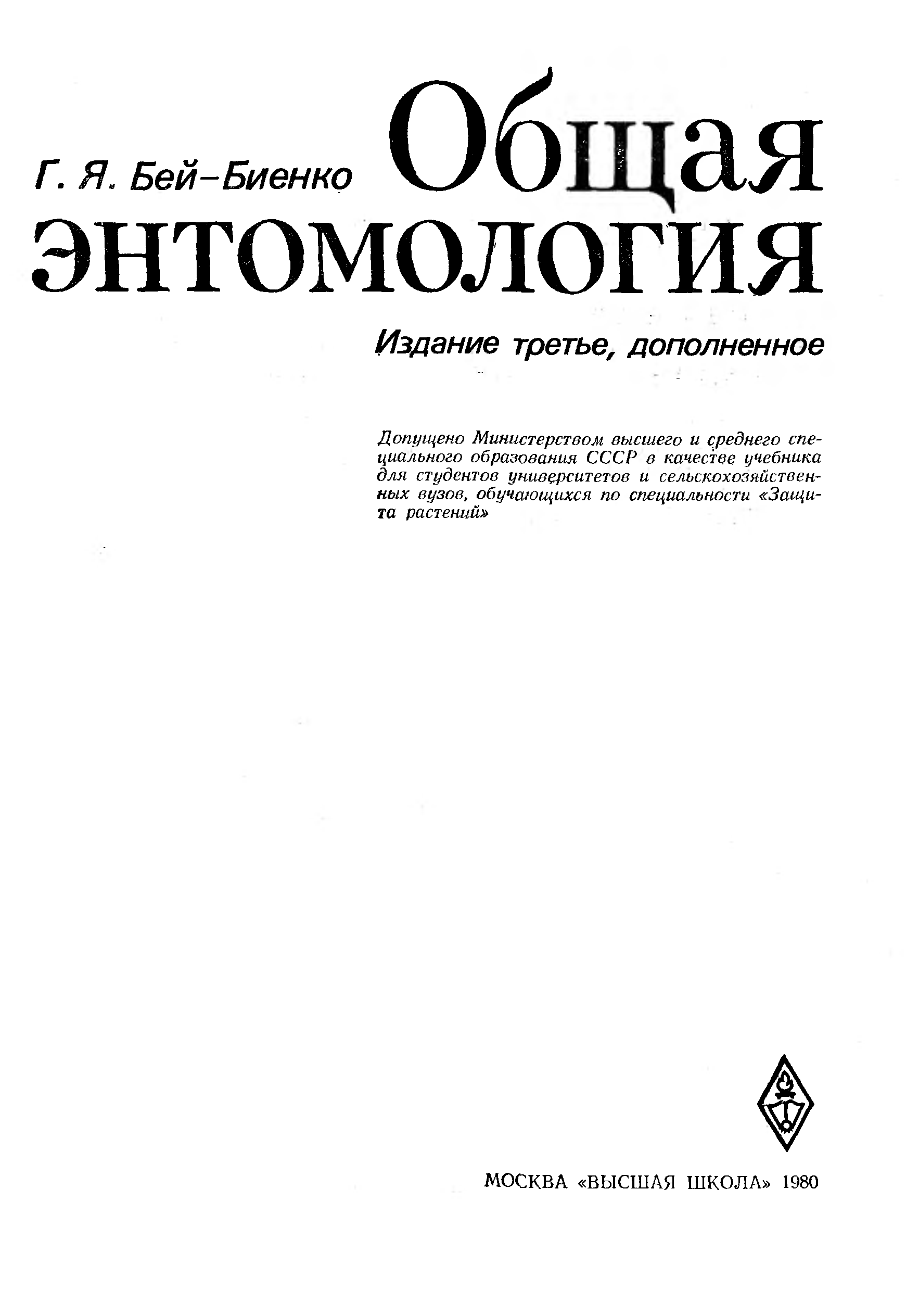 "Общая энтомология" - читать интересную книгу автора (Г. Я. Бей-Биенко)
