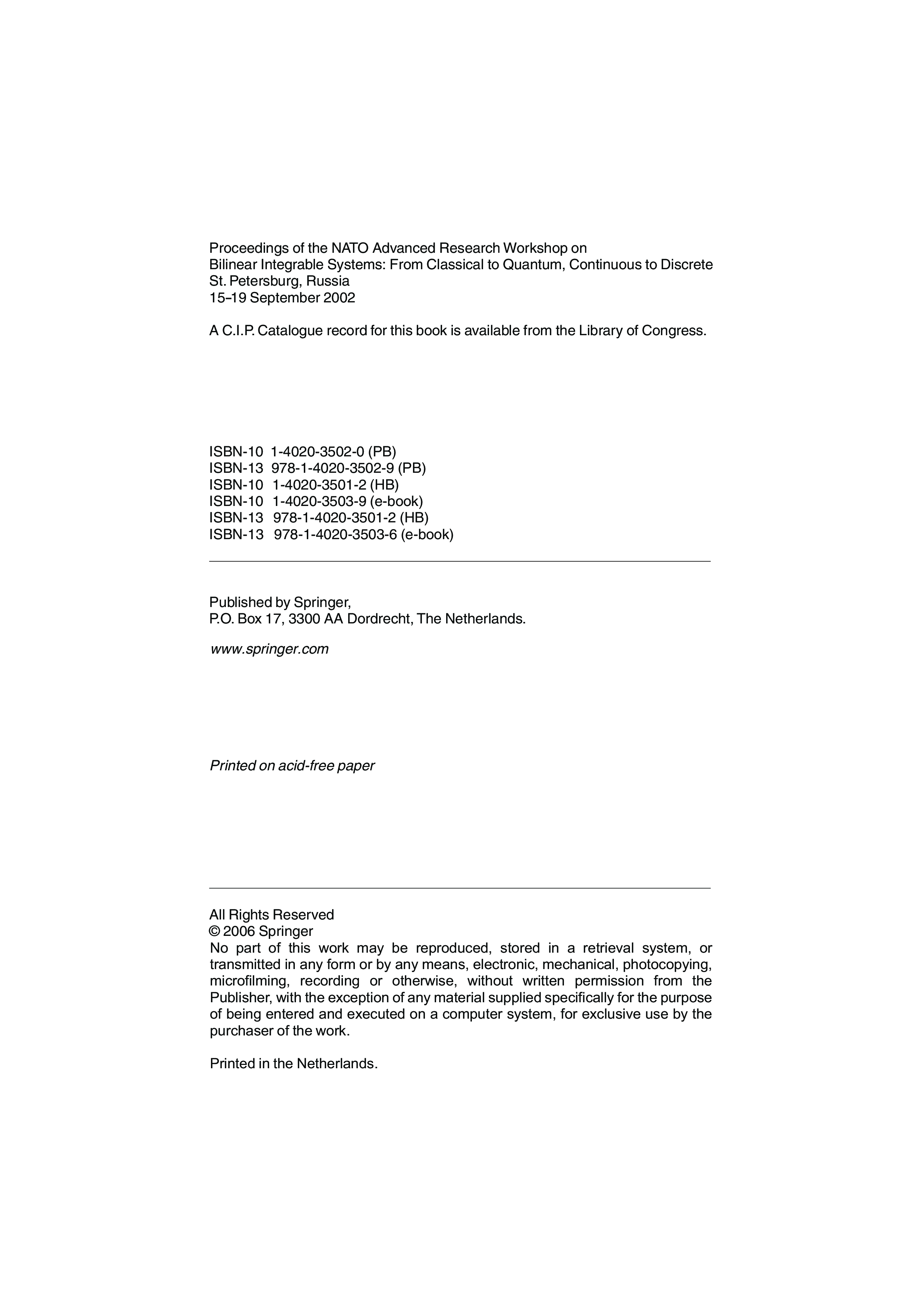 "Bilinear Integrable Systems, from Classical to Quantum, Continuous to Discrete: Proceedings of the NATO Advanced Research Workshop, Held in St. ... II: Mathematics, Physics and Chemistry)" - читать интересную книгу автора (Ludvig D. Faddeev, Pierre Van Moerbeke, Franklin Lambert) |