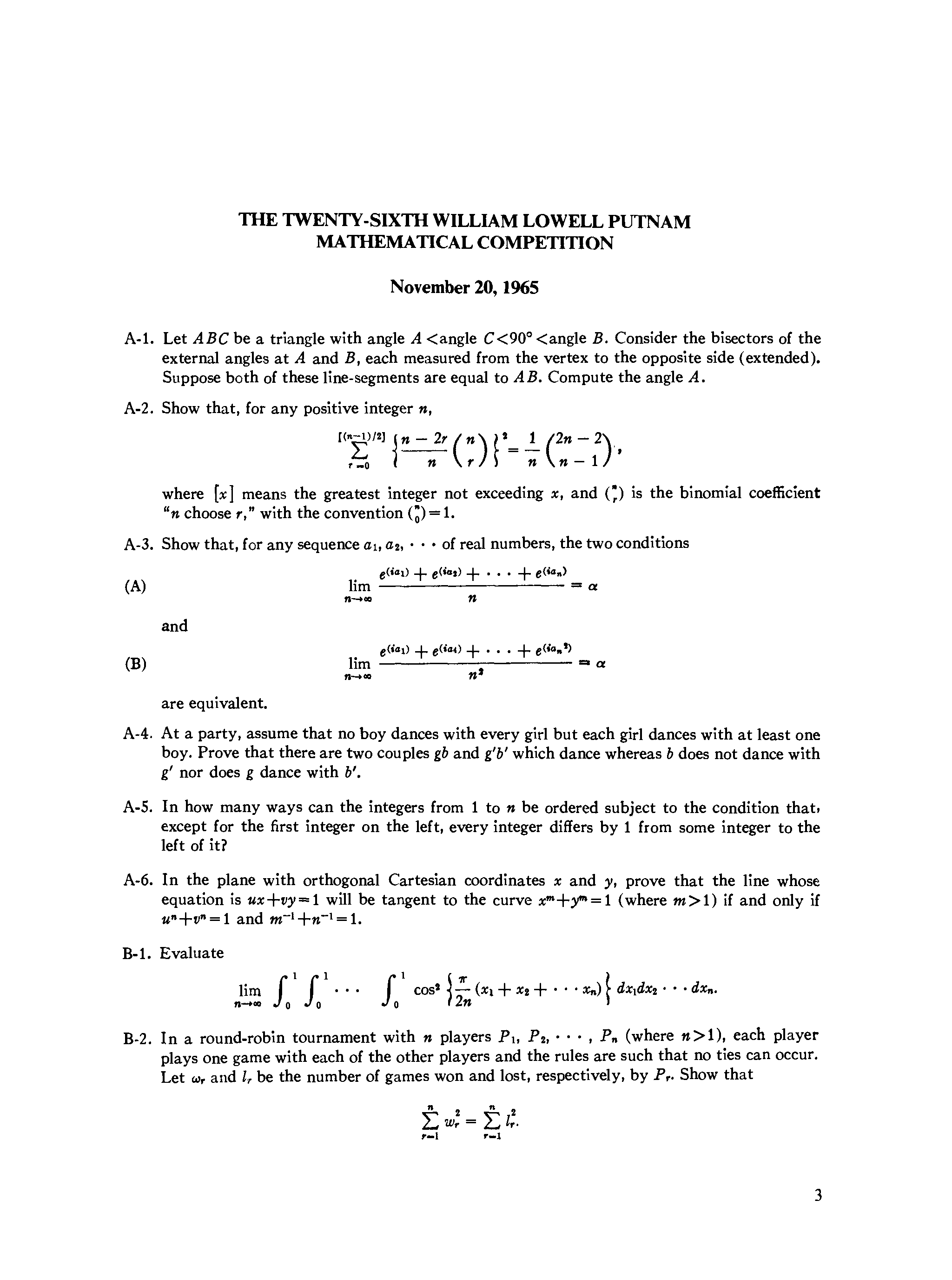 "The William Lowell Putnam mathematical competition. Problems and solutions: 1965-1984." - читать интересную книгу автора (G. L. Alexanderson) |