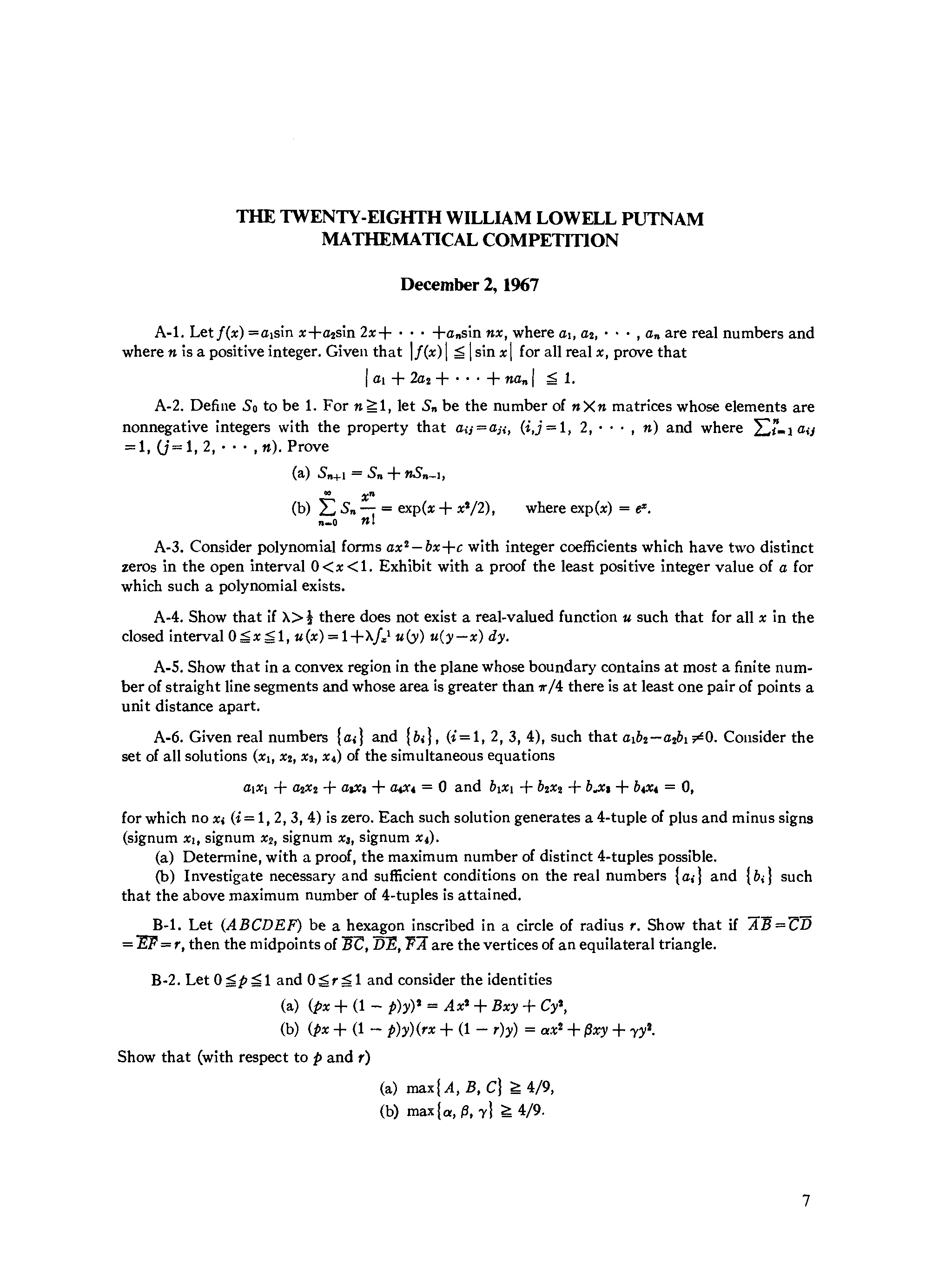 "The William Lowell Putnam mathematical competition. Problems and solutions: 1965-1984." - читать интересную книгу автора (G. L. Alexanderson) |
