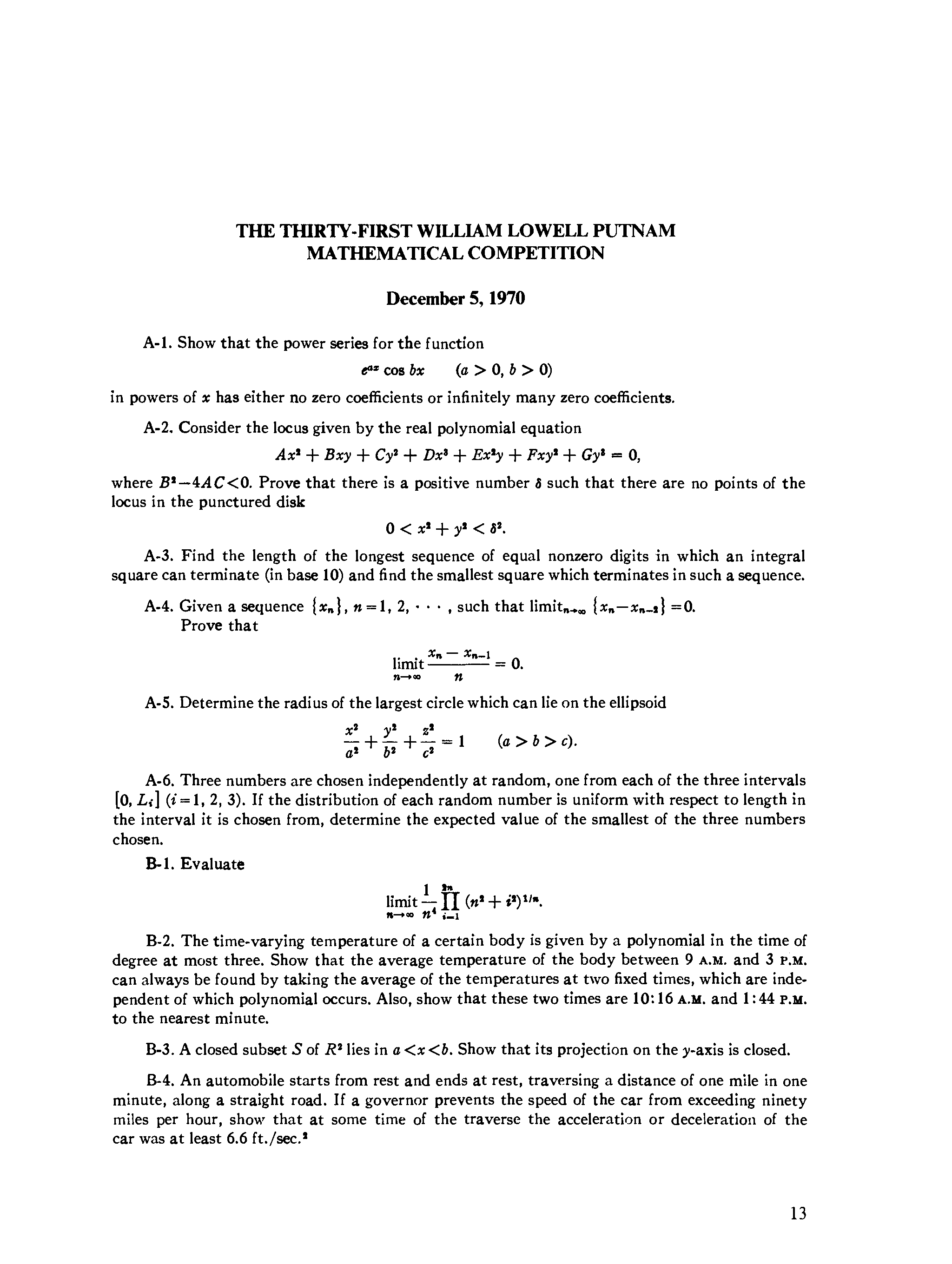 "The William Lowell Putnam mathematical competition. Problems and solutions: 1965-1984." - читать интересную книгу автора (G. L. Alexanderson) |