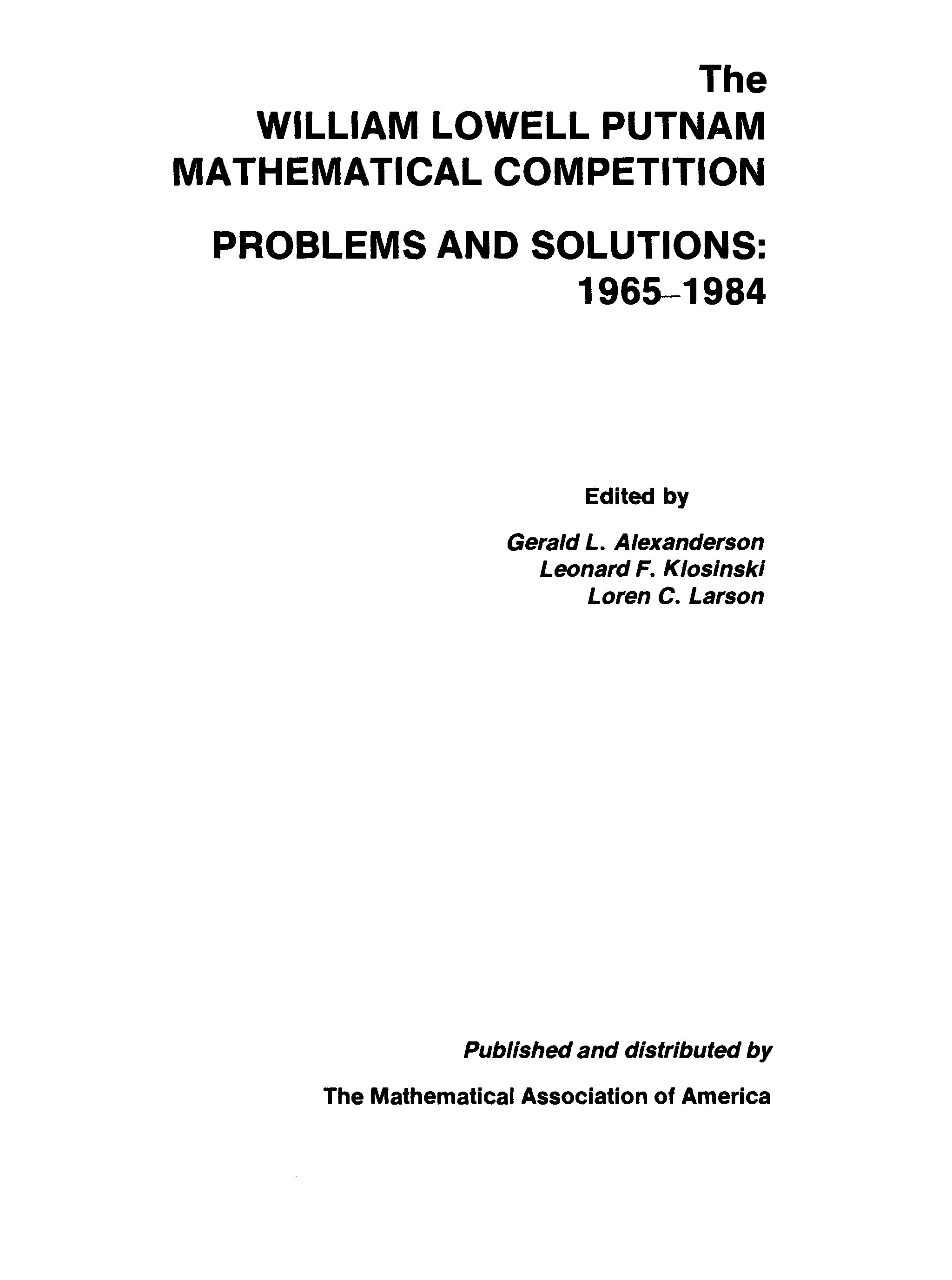"The William Lowell Putnam mathematical competition. Problems and solutions: 1965-1984." - читать интересную книгу автора (G. L. Alexanderson) |