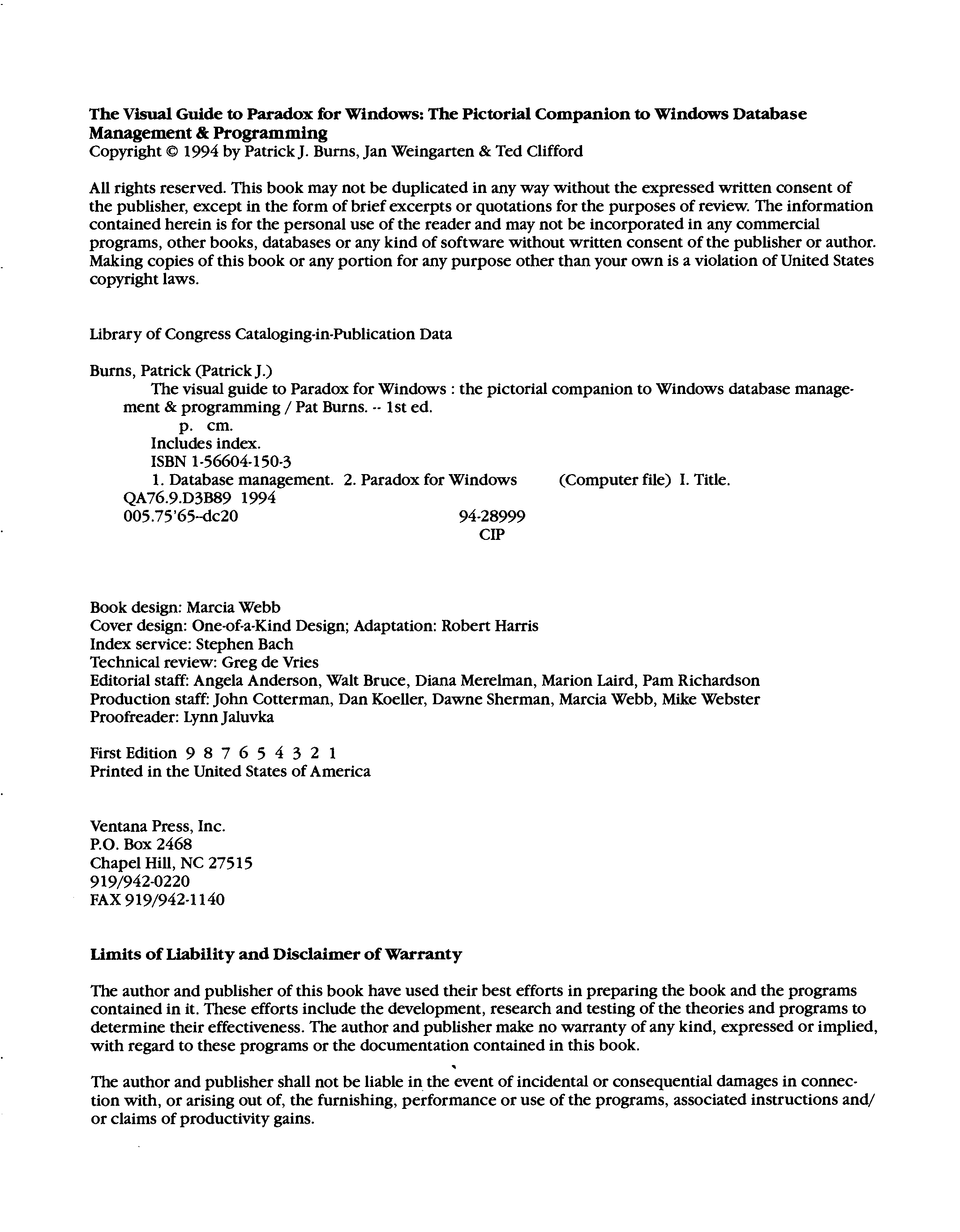 "Visual Guide to Paradox for Windows: The Pictorial Companion to Windows Database Management & Programming/Through Version 5.0/Book and Disk: The ... " - читать интересную книгу автора (Patrick J. Burns, Jan Weingarten, Ted Clifford) |