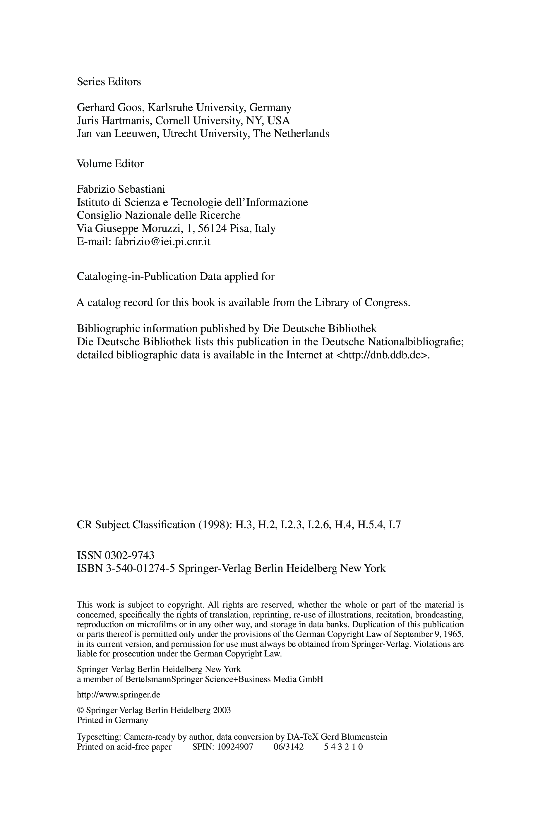 "Advances in Information Retrieval: 25th European Conference on IR Research, ECIR 2003, Pisa, Italy, April 14-16, 2003, Proceedings " - читать интересную книгу автора (Fabrizio Sebastiani) |
