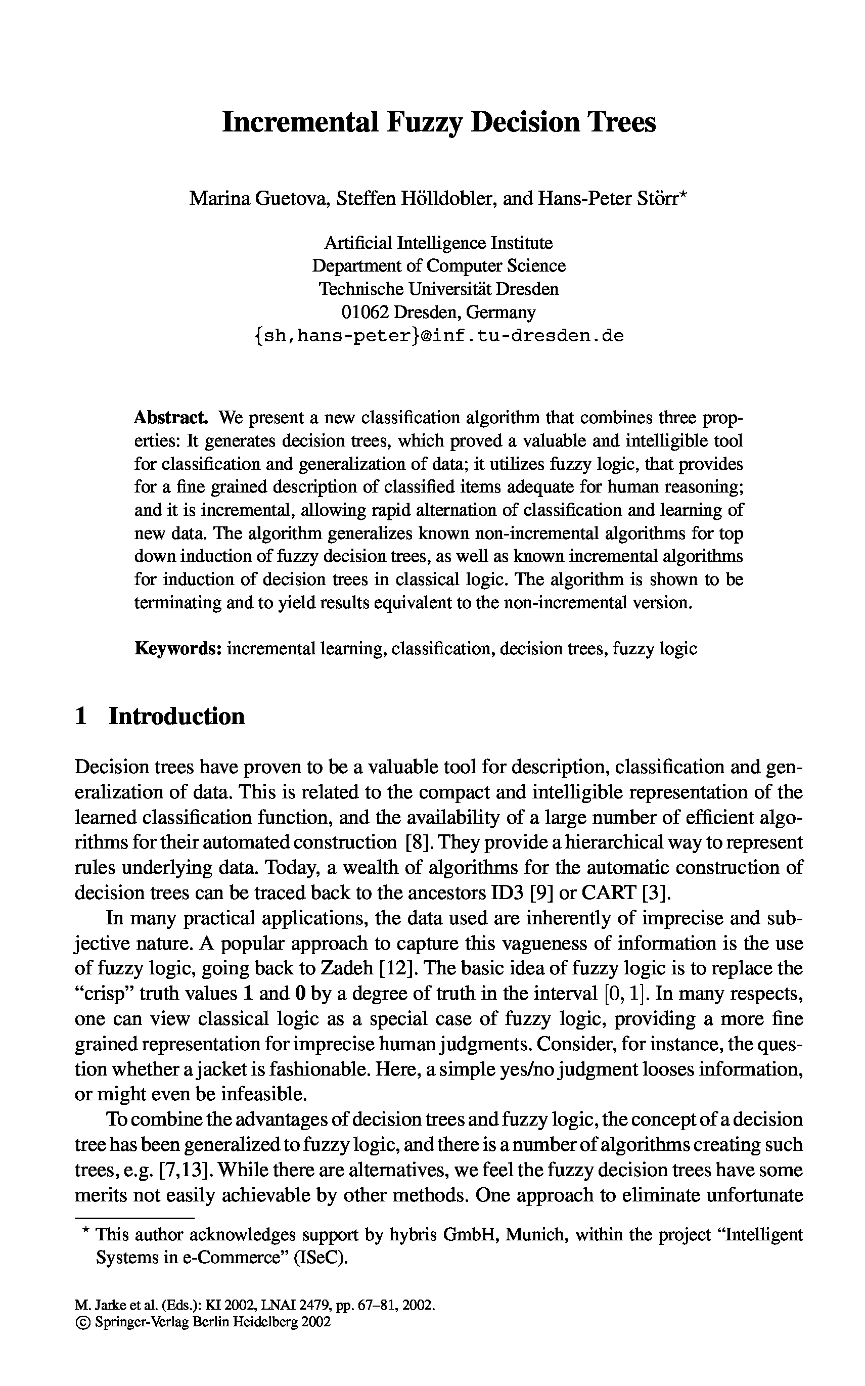 "KI 2002: Advances in Artificial Intelligence: 25th Annual German Conference on AI, KI 2002, Aachen, Germany, September 16-20, 2002. Proceedings " - читать интересную книгу автора (Matthias Jarke, Jana Koehler, Gerhard Lakemeyer) |