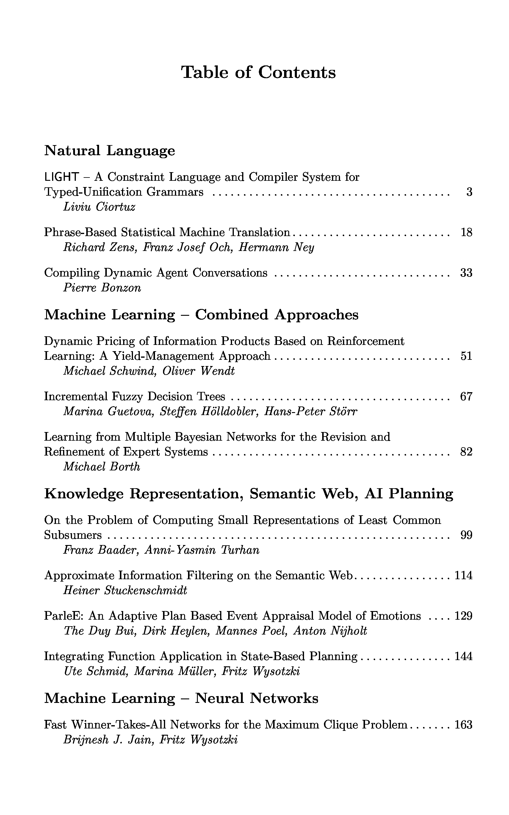 "KI 2002: Advances in Artificial Intelligence: 25th Annual German Conference on AI, KI 2002, Aachen, Germany, September 16-20, 2002. Proceedings " - читать интересную книгу автора (Matthias Jarke, Jana Koehler, Gerhard Lakemeyer) |